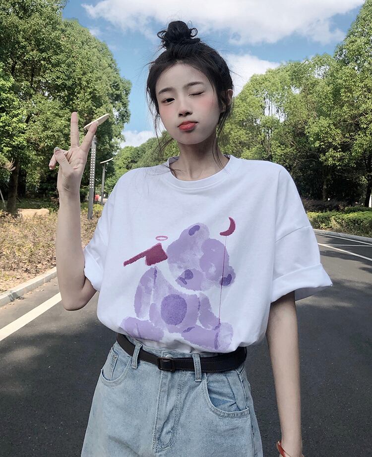 色:白インクツキノワグマTシャツ,黒インクツキノワグマTシャツ