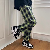格子柄パンツ 夏服韓国ファッショントレンドダークグリーンルーズウェスト薄手ワイドレッグ ストリート 夏物 ワイドパンツ ウエスト Studios21573175085 | pLegLad Studios