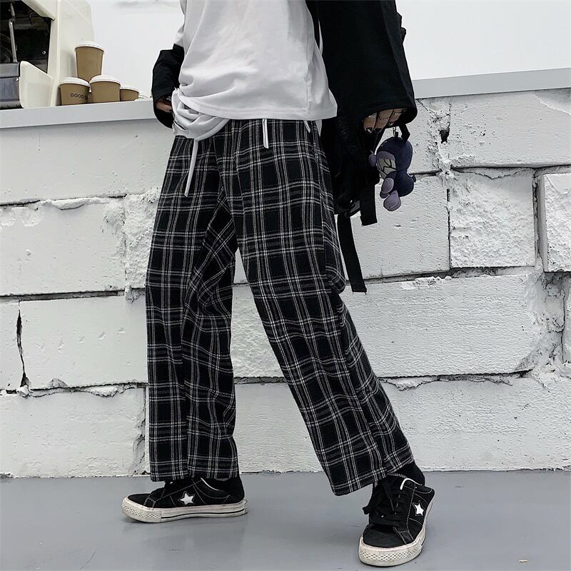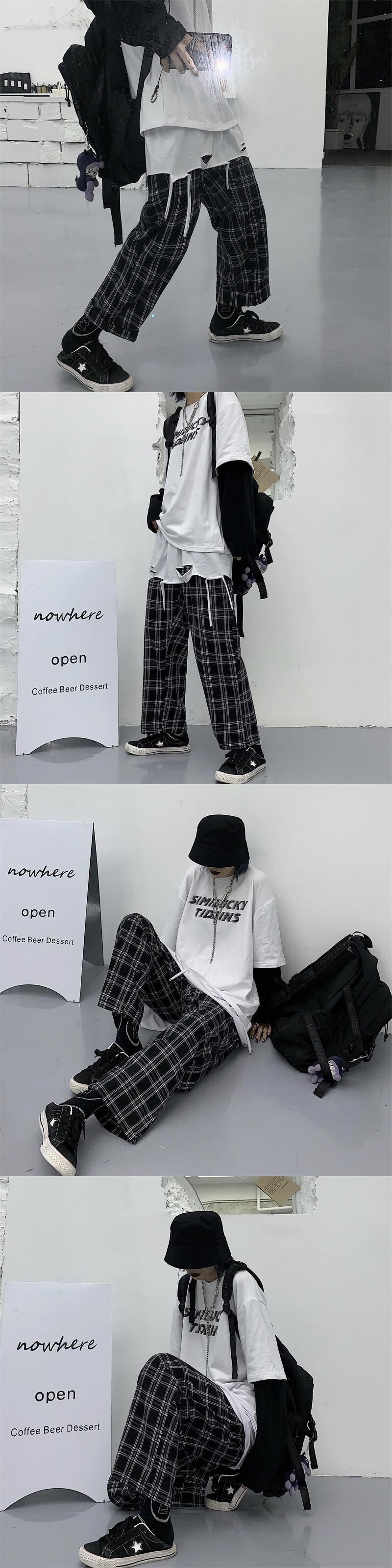 秋物格子柄パンツ レディーストレンド薄手ルーズカジュアル オータム コーデ モノクロ Studio3221735994