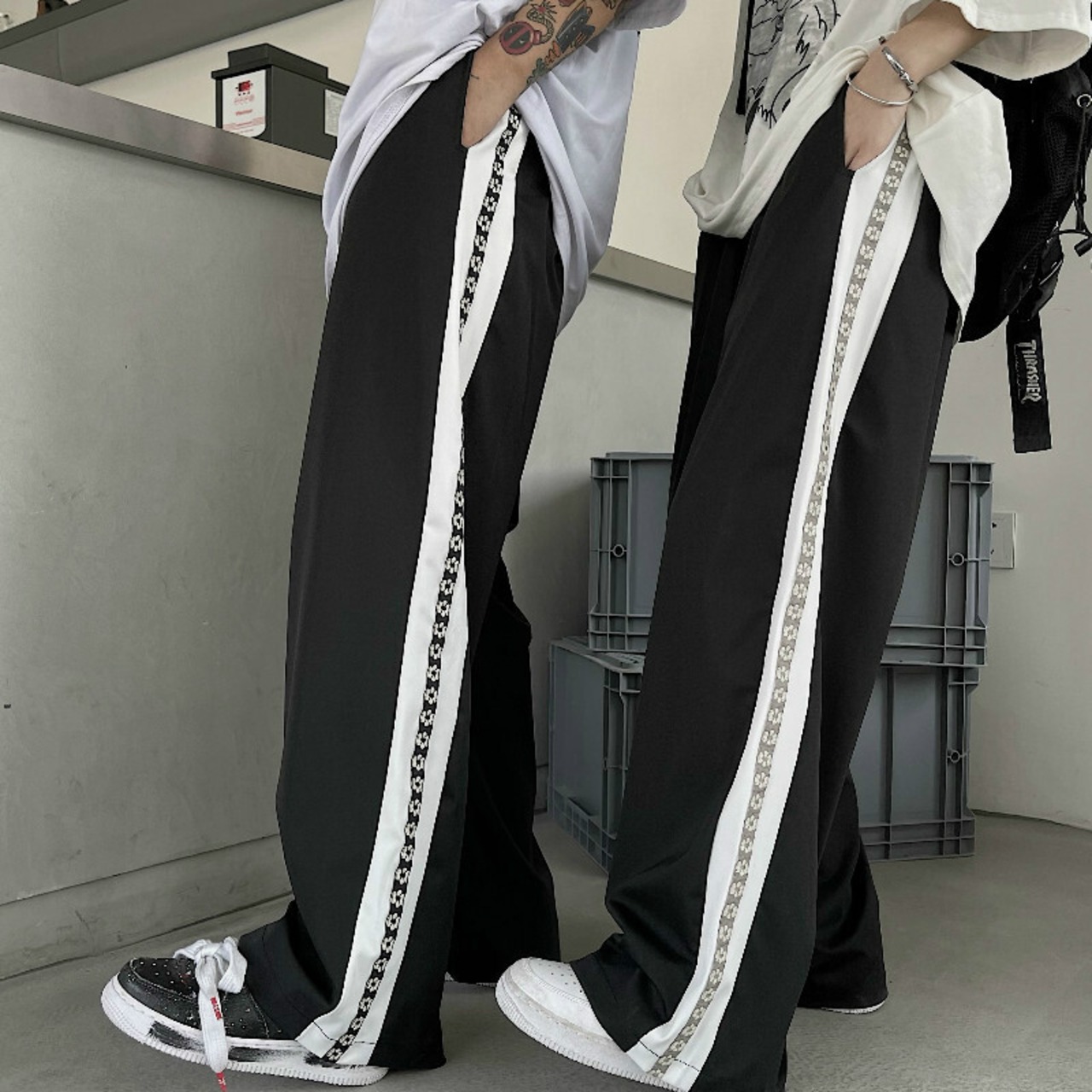 カジュアルパンツ レディース韓国ファッショントレンドスタンダードルーズハイウェストウェストワイドレッグ レトロ ワイドパンツ フラワーデザイン スタイル ウエスト Studios51075933329 | pLegLad Studios