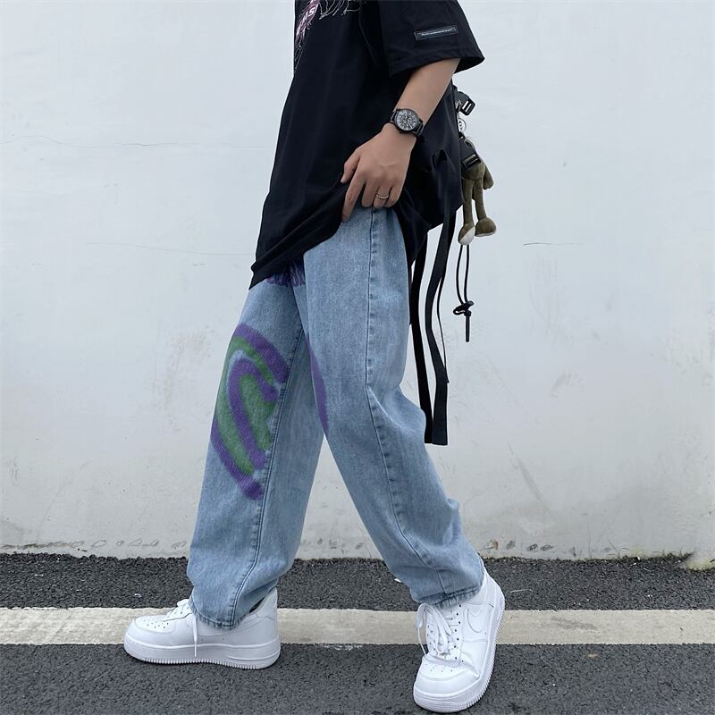 秋物ジーンズ レディーススタイル韓国ファッションルーズパンツ カジュアル ストリート オータム コーデ モノクロ Studio58437778675