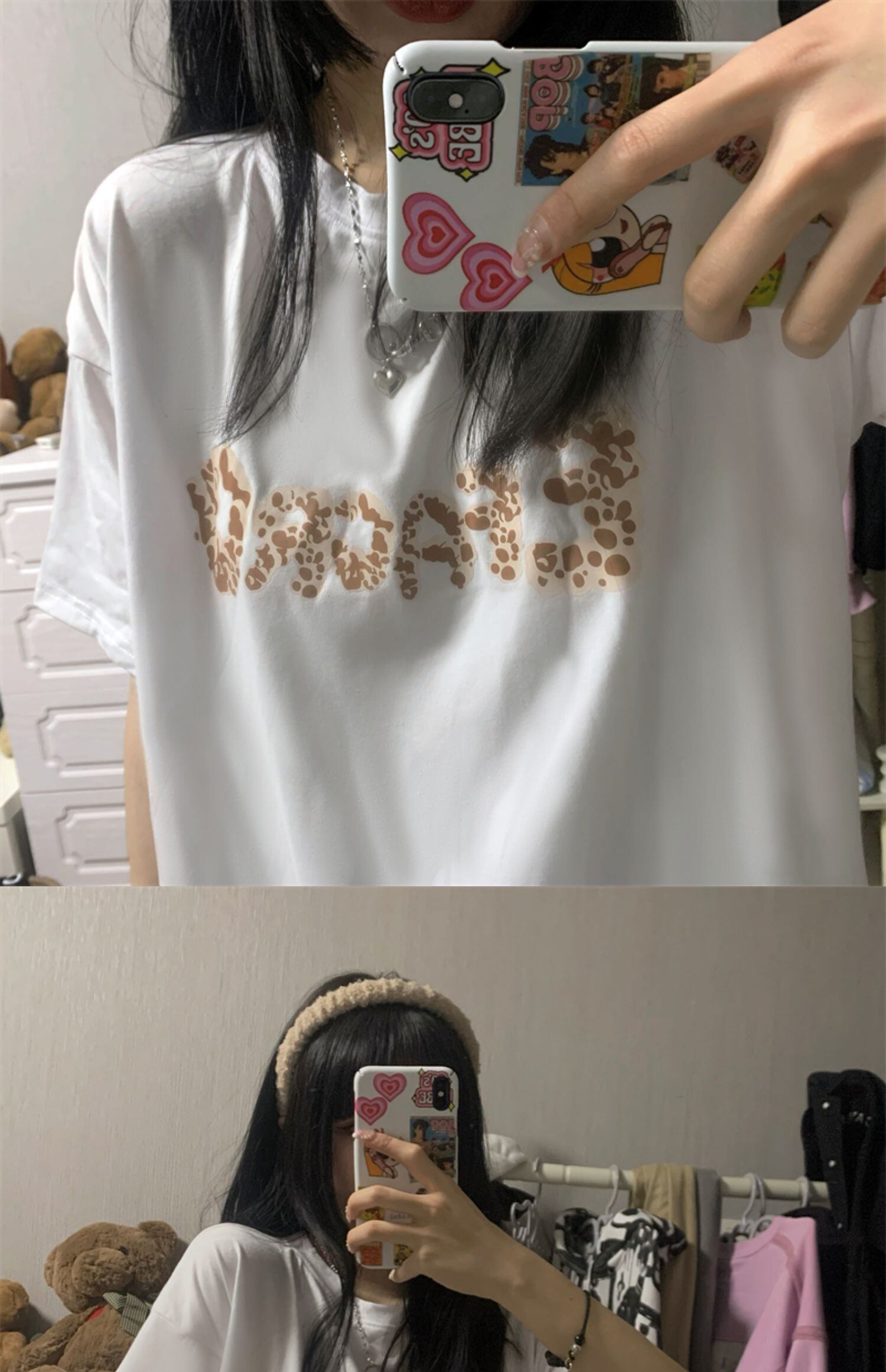 カジュアルトレンドTシャツレディース夏服韓国ファッションレオパードプリント柄プリントルーズトップス 夏物 スタイル コーデ モノクロ Studio76859966999