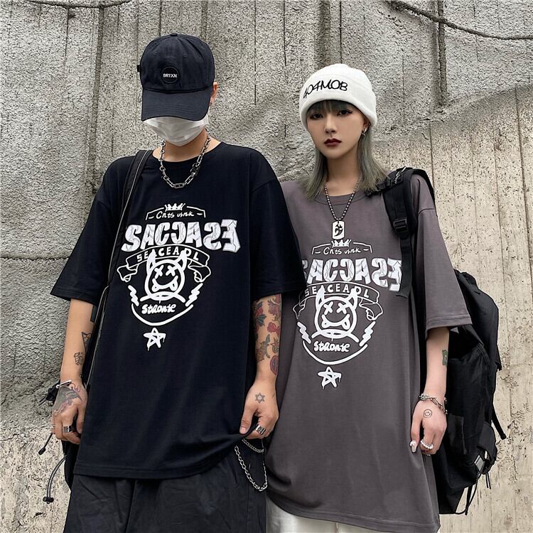夏服韓国ファッショントレンドスタイルスタンダードプリントカジュアルルーズTシャツメンズレディース レトロ ストリート 原宿 夏物 Studios10877701016 | pLegLad Studios
