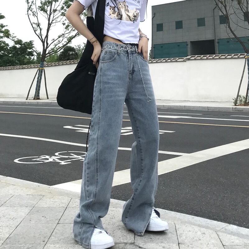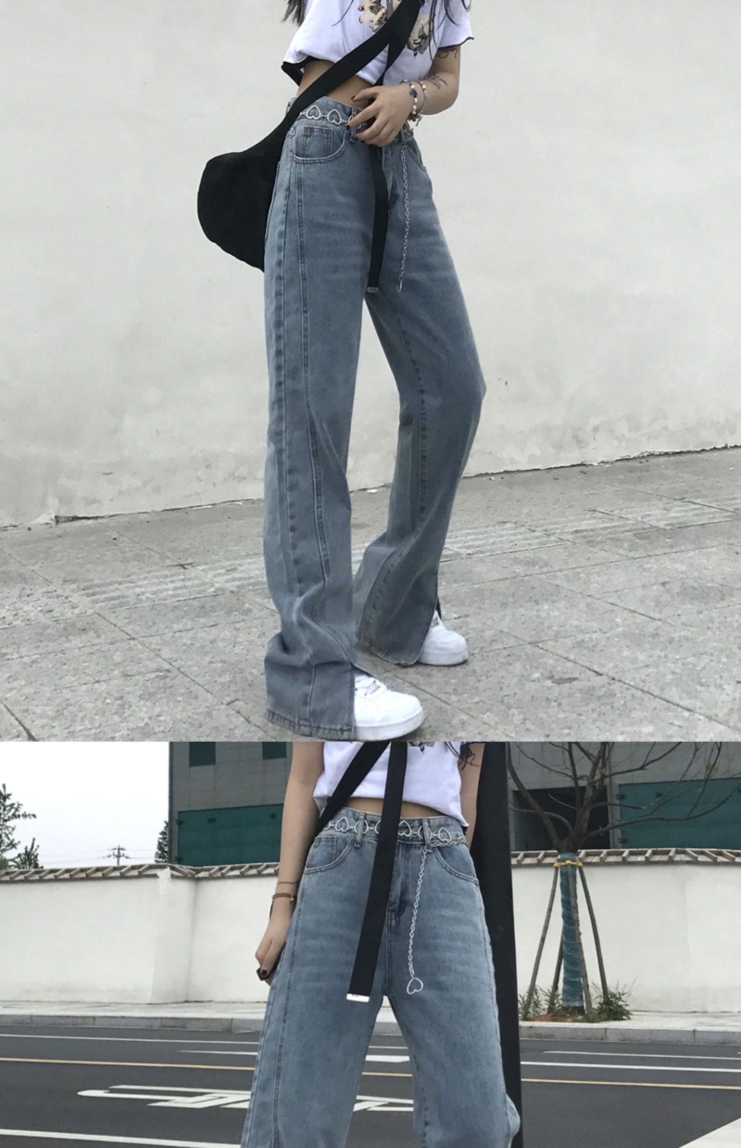 ジーンズ レディース夏服スタイル韓国ファッションスタンダードハイウェストウェストルーズワイドレッグパンツ レトロ 夏物 ワイドパンツ ステッチ ウエスト コーデ モノクロ Studio64887096864