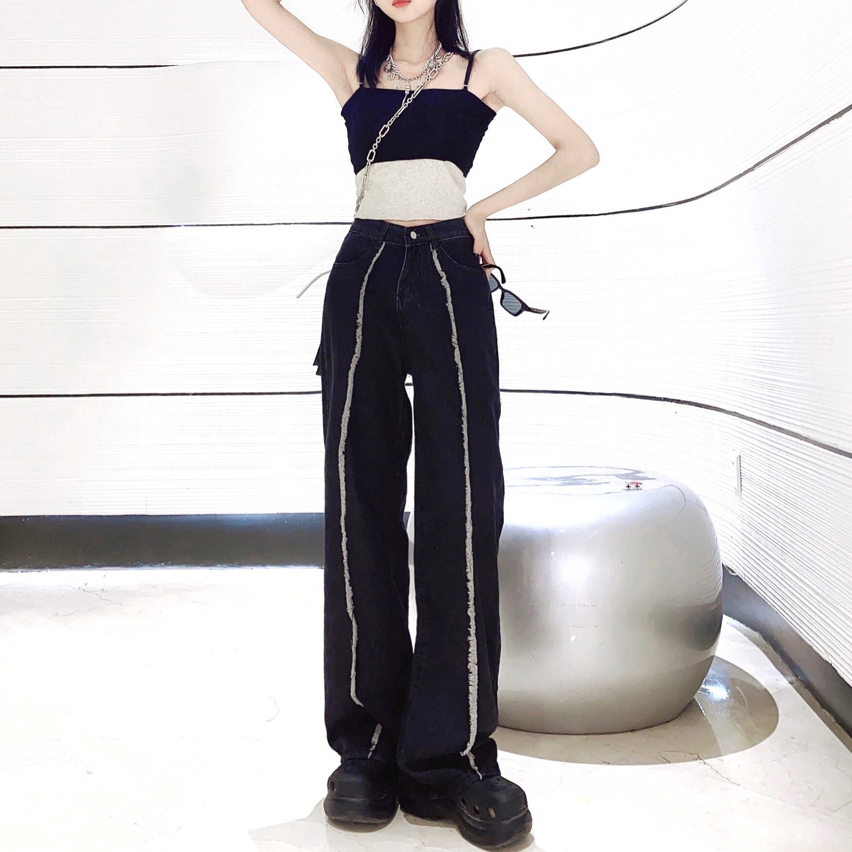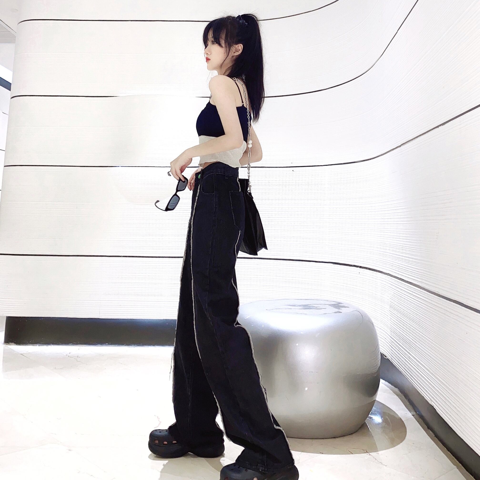 スタイルスリムカジュアルパンツ レディース夏服韓国ファッションハイウェストウェストワイドレッグ ストリート 原宿 夏物 ワイドパンツ ウエスト コーデ モノクロ Studio55021258311