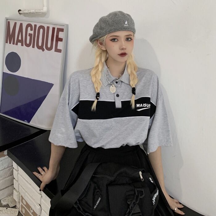 シャツ トップス 夏服韓国ファッショントレンドスタンダードカラールーズTシャツレディース レトロ 夏物 ステッチ ボーイズ スタイル Studios43787620368 | pLegLad Studios