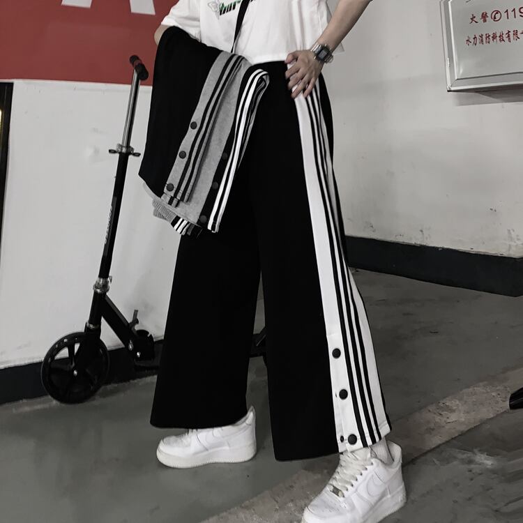 ワイドレッグカジュアルパンツ レディース夏服韓国ファッショントレンドスタンダードストライプブレストルーズ薄手 レトロ 夏物 ワイドパンツ スタイル Studios69651062477 | pLegLad Studios