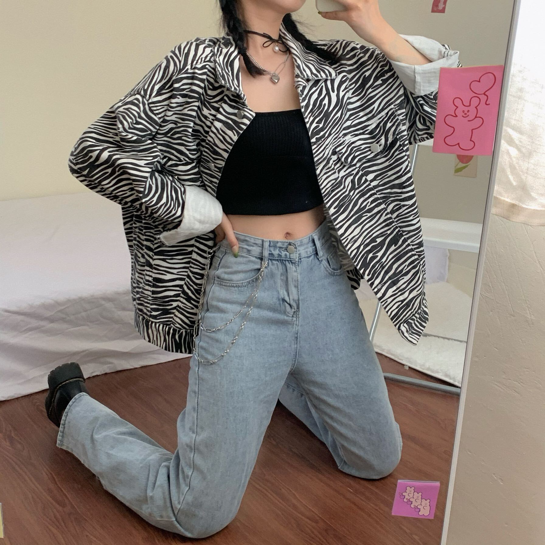 パターンジャケット レディース秋物スタイルスタンダードルーズ韓国ファッショントップス レトロ オータム ボーイズ コーデ モノクロ Studio23286140993