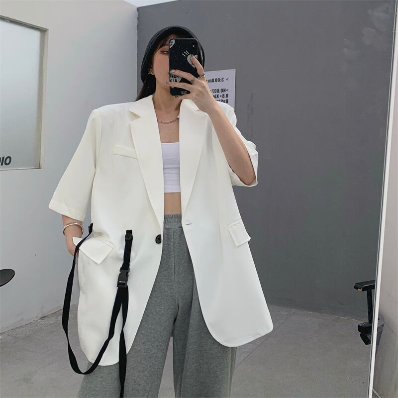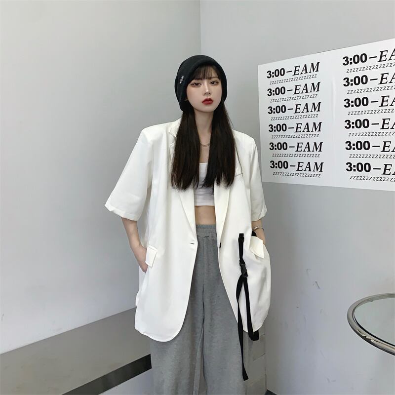ジャケット レディース夏服韓国ファッショントレンド薄手トップス 夏物 ボーイズ スタイル コーデ モノクロ Studio81250794843