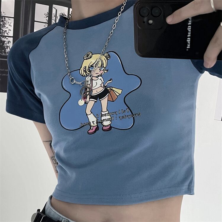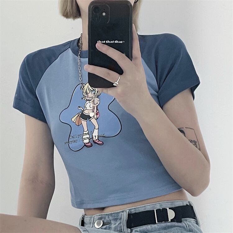 ショートトップス レディース夏服韓国ファッショントレンドスタイルカラーラウンドネックカジュアルTシャツ ストリート 原宿 夏物 Oネック Studios52687278584 | pLegLad Studios