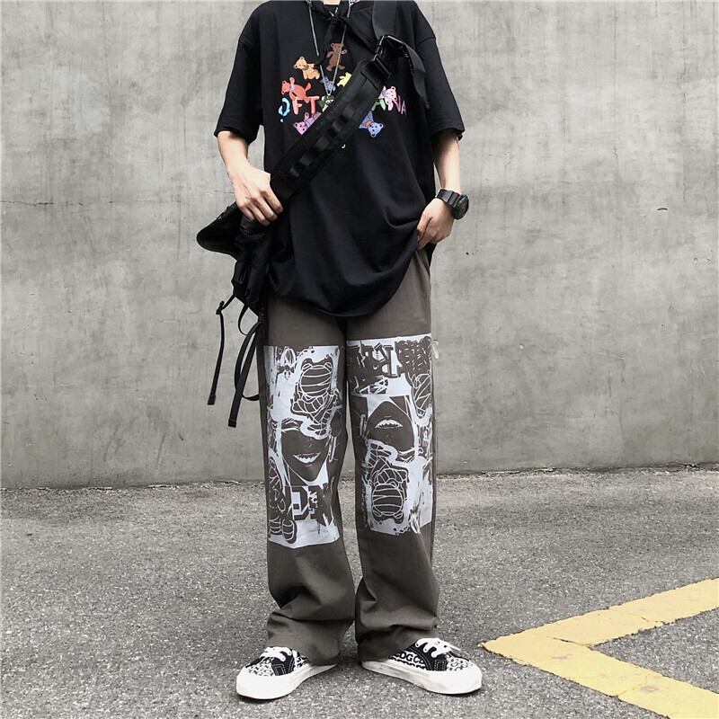 プリント柄パンツレディース夏服トレンドルーズパンツ ハイウェストカジュアル 夏物 ウエスト コーデ モノクロ Studio35936288635
