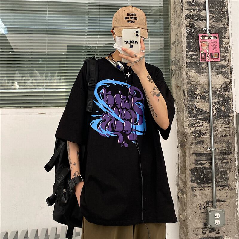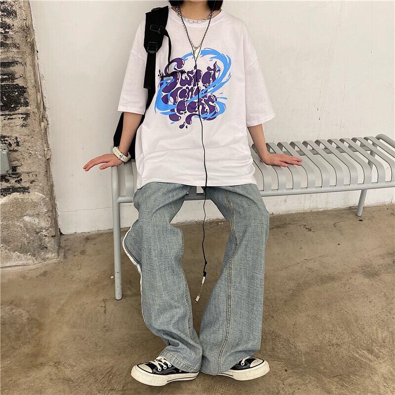 スタイルTシャツレディース夏服韓国ファッショントレンドプリントルーズラウンドネックトップス 原宿 夏物 Oネック コーデ モノクロ Studio10683027508