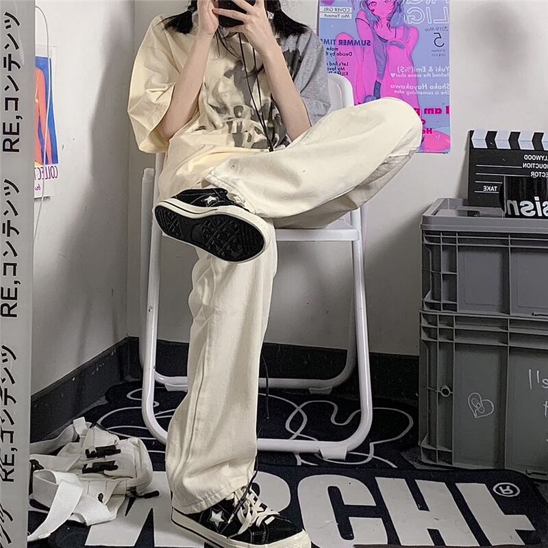 イエロージーンズ レディース夏服韓国ファッショントレンド薄手ハイウェストウェストワイドレッグパンツ 夏物 ワイドパンツ スタイル ウエスト コーデ モノクロ Studio15293205361