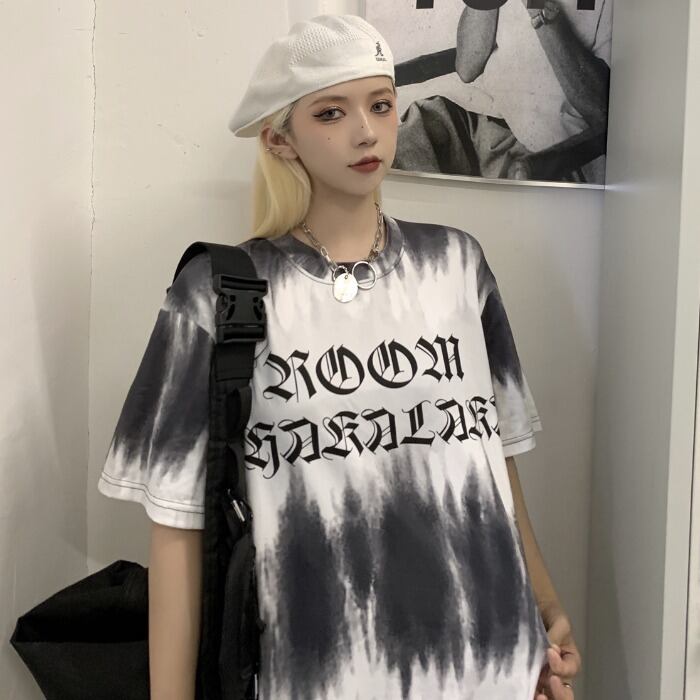 トップス レディース夏服韓国ファッショントレンドスタイルプリントルーズTシャツ 原宿 夏物 ボーイズ コーデ モノクロ Studio39096456636