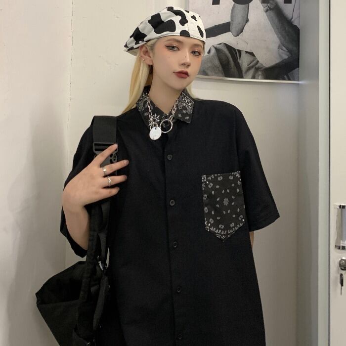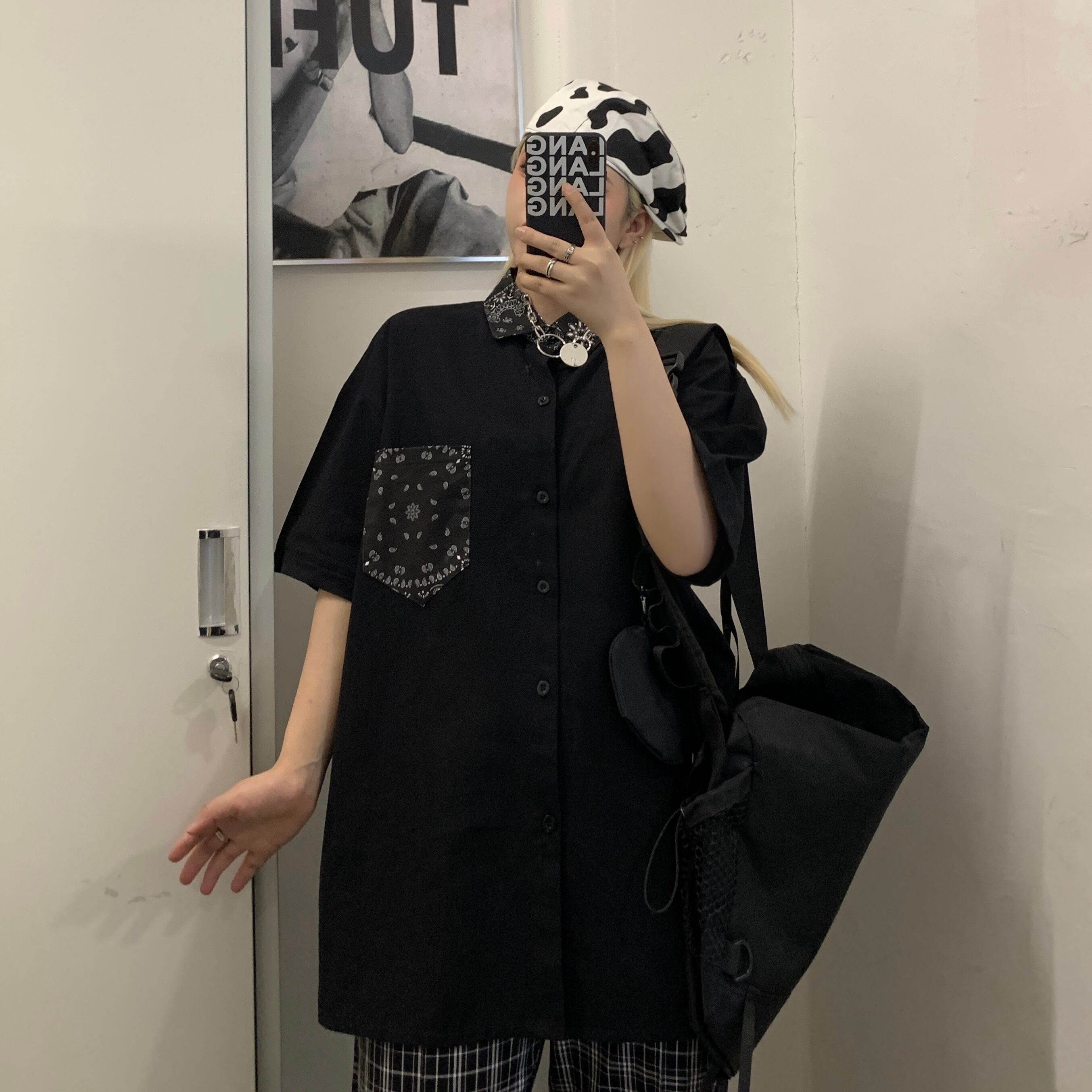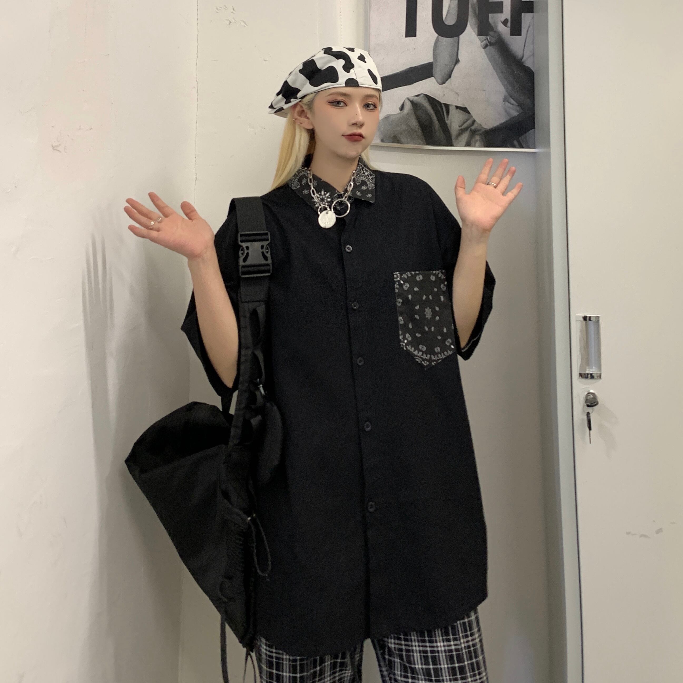 夏服韓国ファッショントレンドスタイルスタンダードFlowerデザイン ポケットルーズカジュアルシャツ レディース レトロ ストリート 原宿 夏物 フラワーデザイン Studios38244186636 | pLegLad Studios