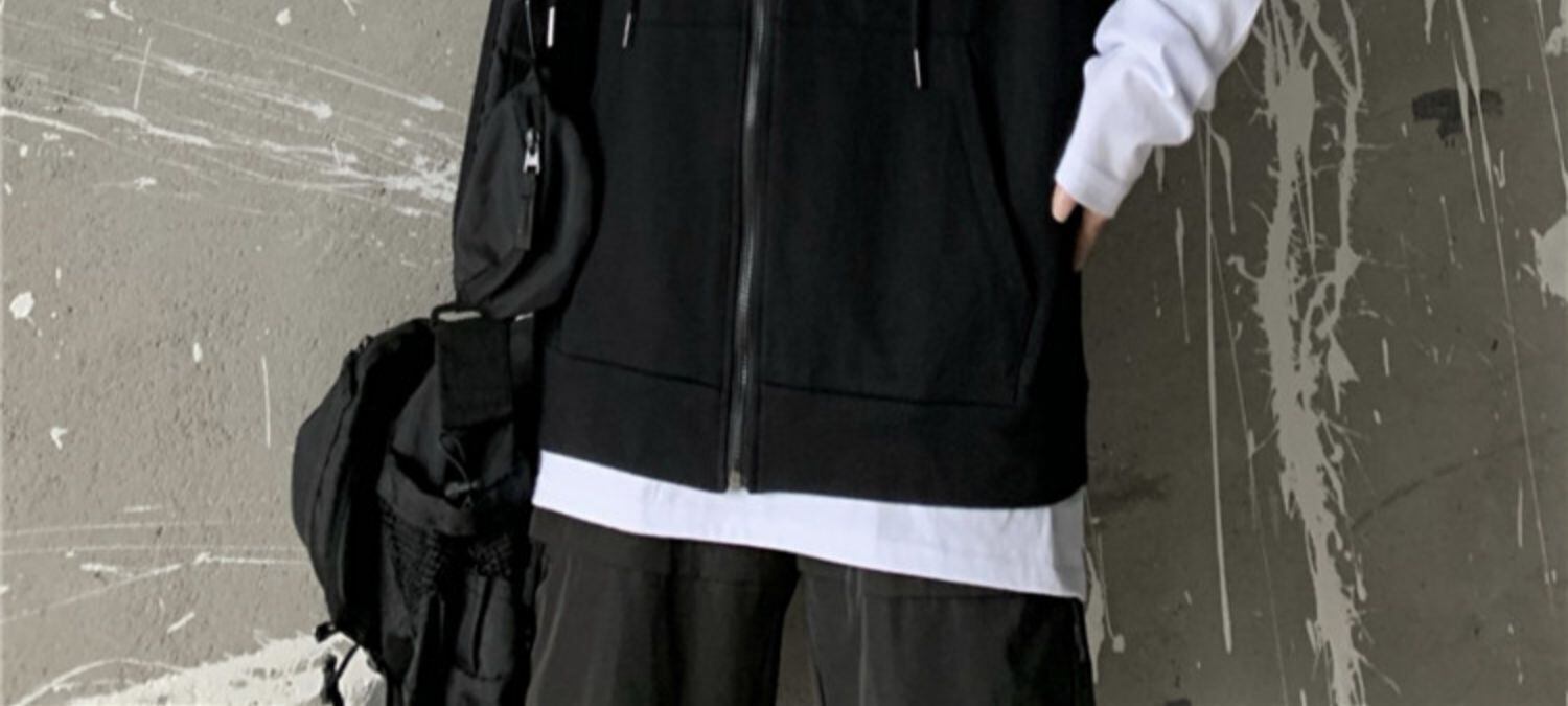 ノースリーブフードレディース夏服韓国ファッショントレンドトップス 夏物 スタイル ウエスト コーデ モノクロ Studio18609152035
