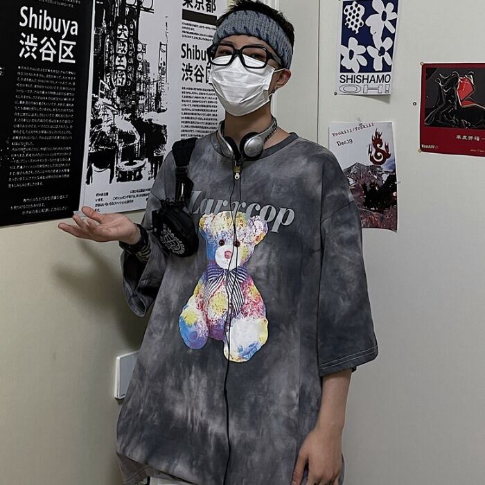 トップス レディース夏服韓国ファッショントレンドプリント柄ルーズカジュアルTシャツ 夏物 スタイル コーデ モノクロ Studio19475802157
