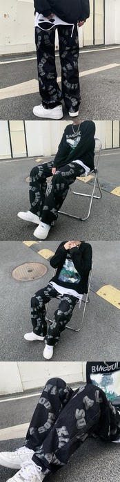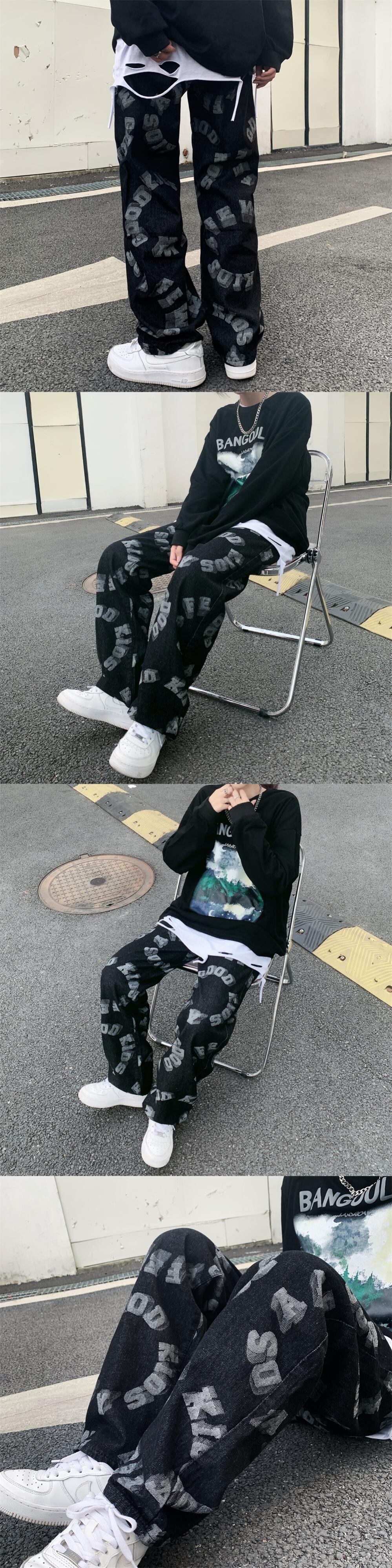 ジーンズ レディース韓国ファッショントレンドプリントルーズハイウェストウェストワイドレッグパンツ ストリート 大人ガーリー スウィート キュート カジュアル ワイドパンツ スタイル ウエスト Studios48775870524 | pLegLad Studios