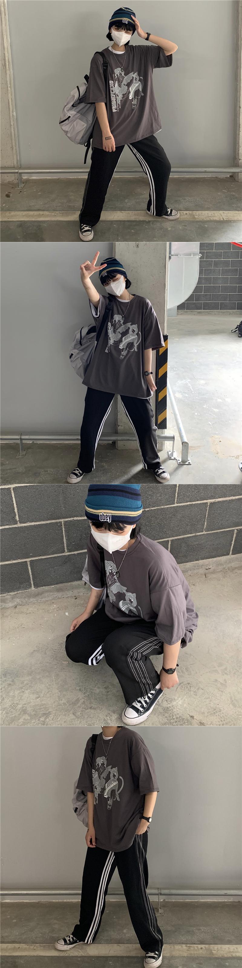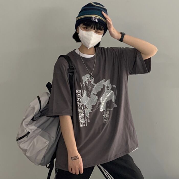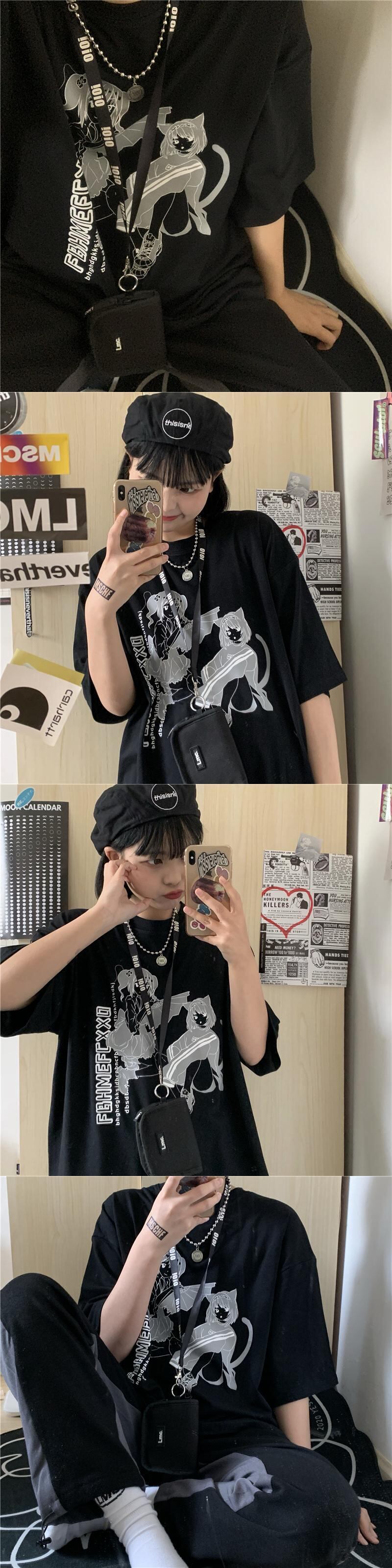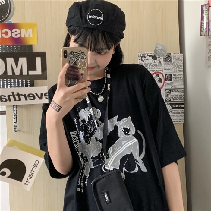 Tシャツシャツ トップス レディース夏服韓国ファッショントレンドプリントルーズゆったり 夏物 ボーイズ スタイル コーデ モノクロ Studio68778246657 | pLegLad Studios