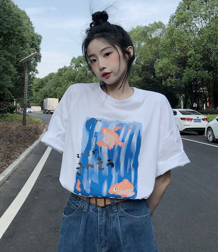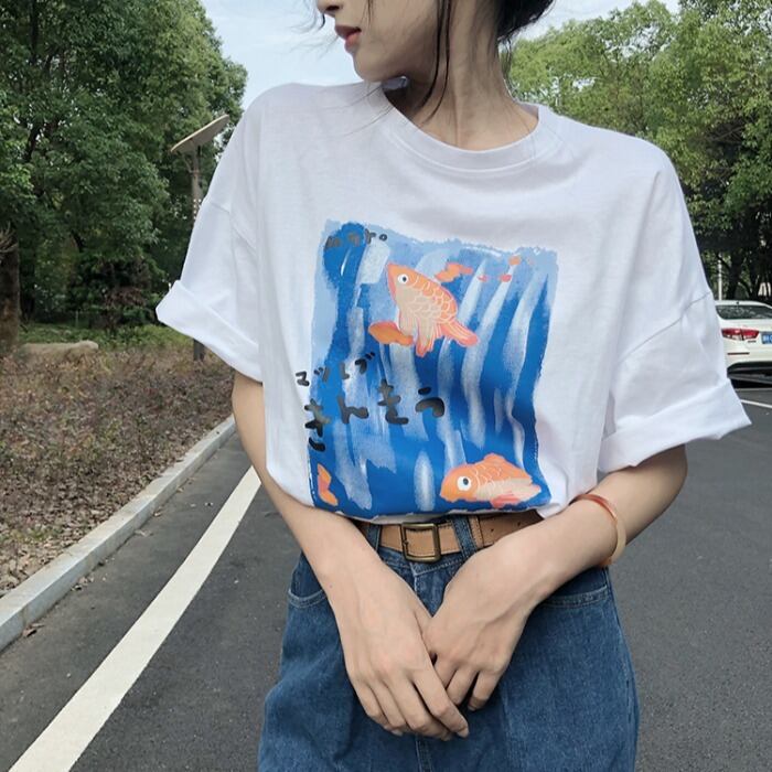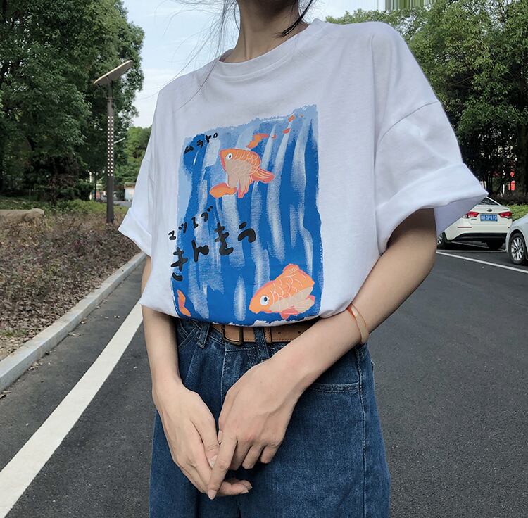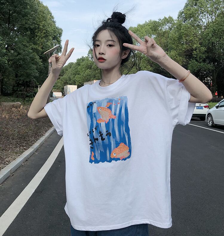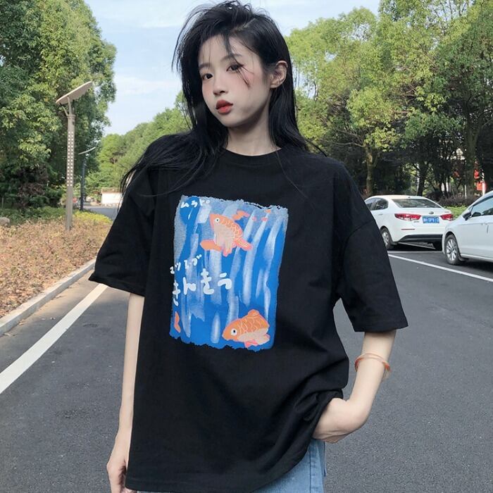 色:白い小さな鯉のTシャツ,ブラックリトルカープTシャツ