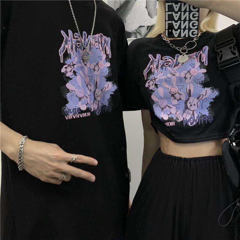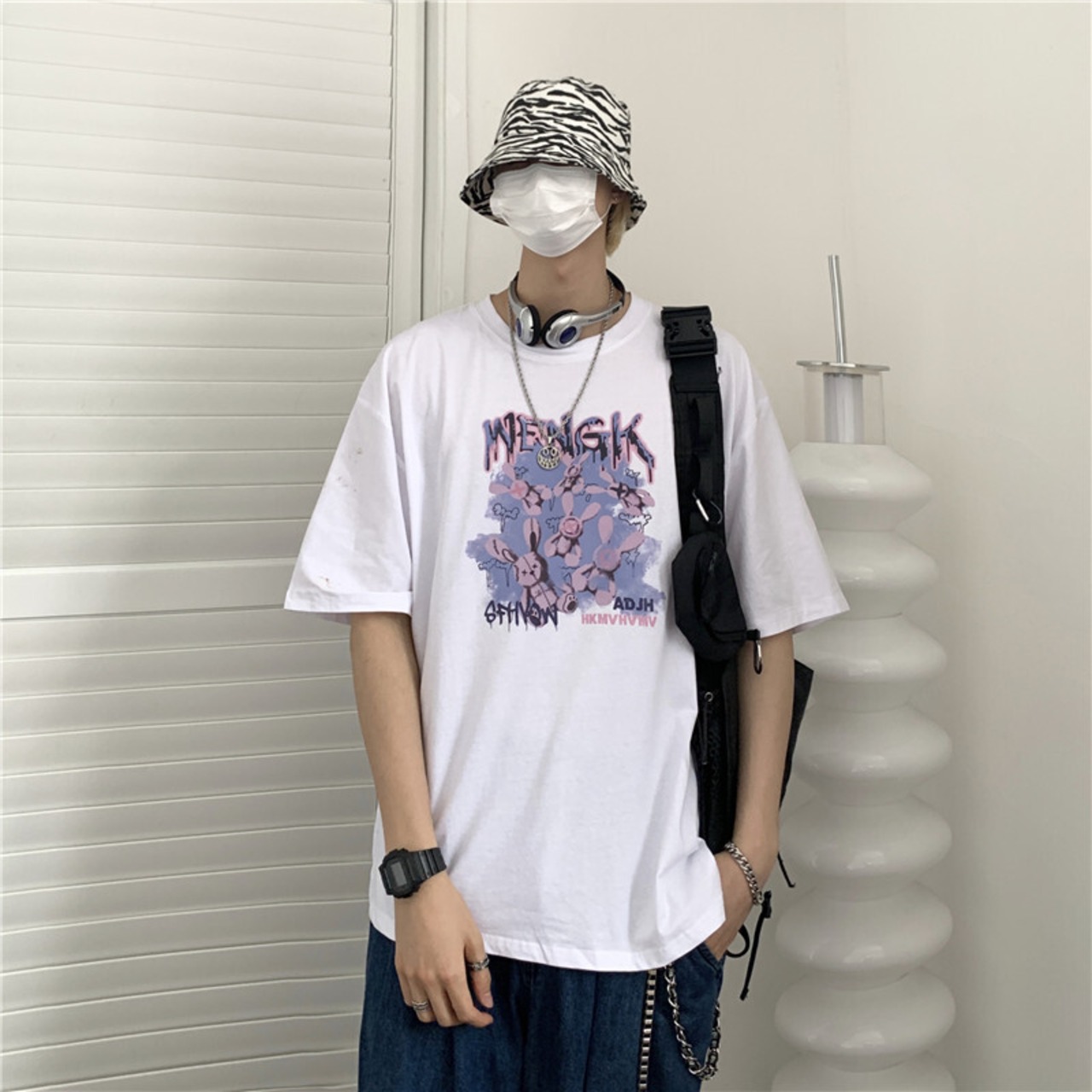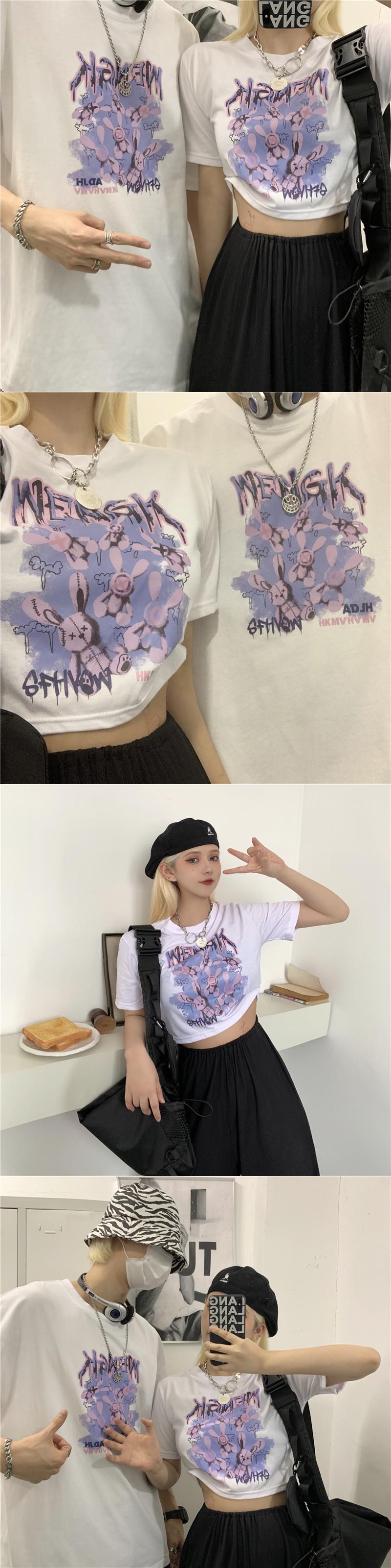 カジュアルTシャツレディース夏服韓国ファッショントレンドプリント柄ルーズトップス 夏物 スタイル コーデ モノクロ Studio66722098591