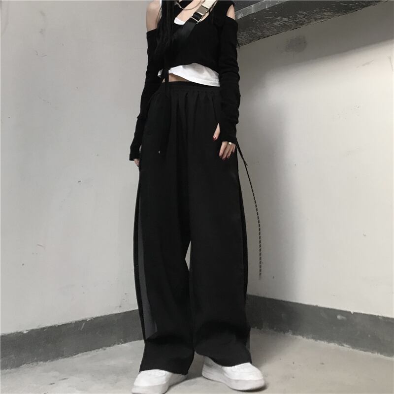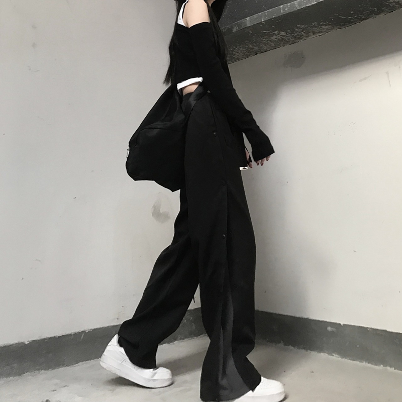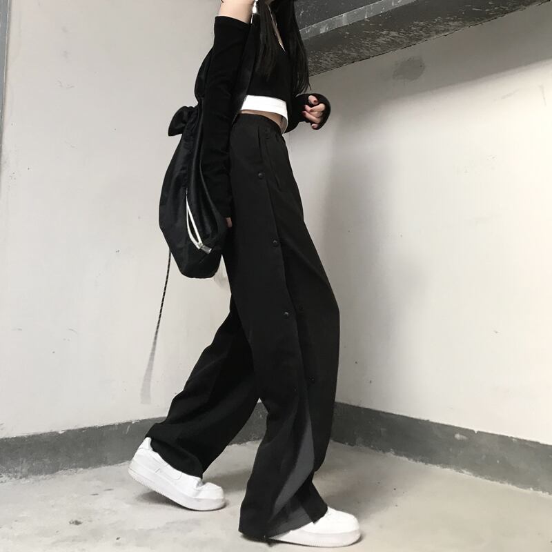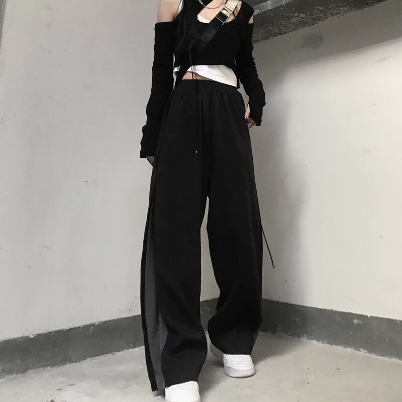 秋物カジュアルパンツ レディーストレンドルーズハイウェストウェスト オータム ステッチ ウエスト コーデ モノクロ Studio85162222859