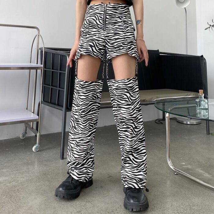 夏服トレンドチェーン パンツ パターンカジュアルレディース 夏物 ステッチ コーデ モノクロ Studio90624211097
