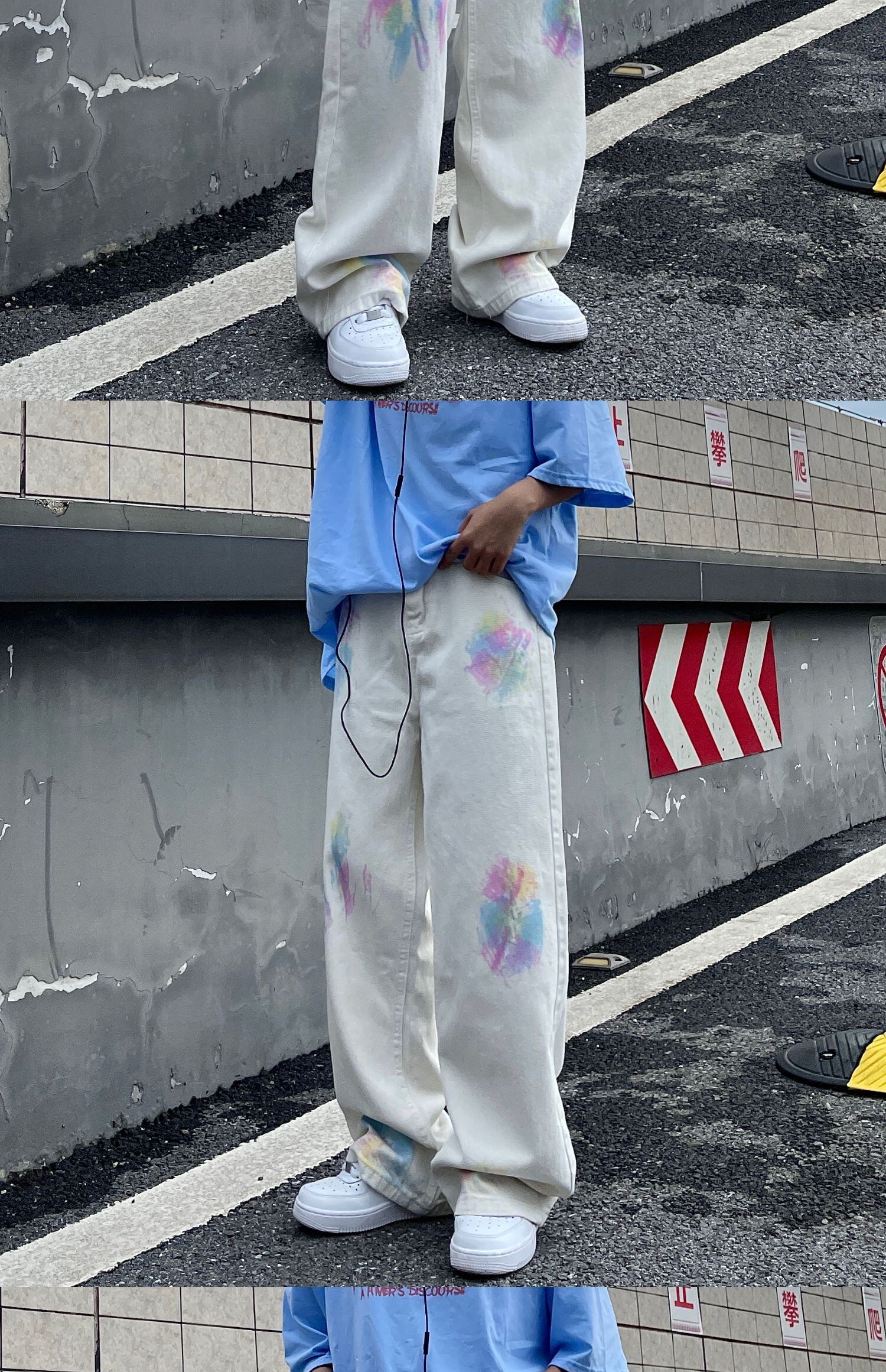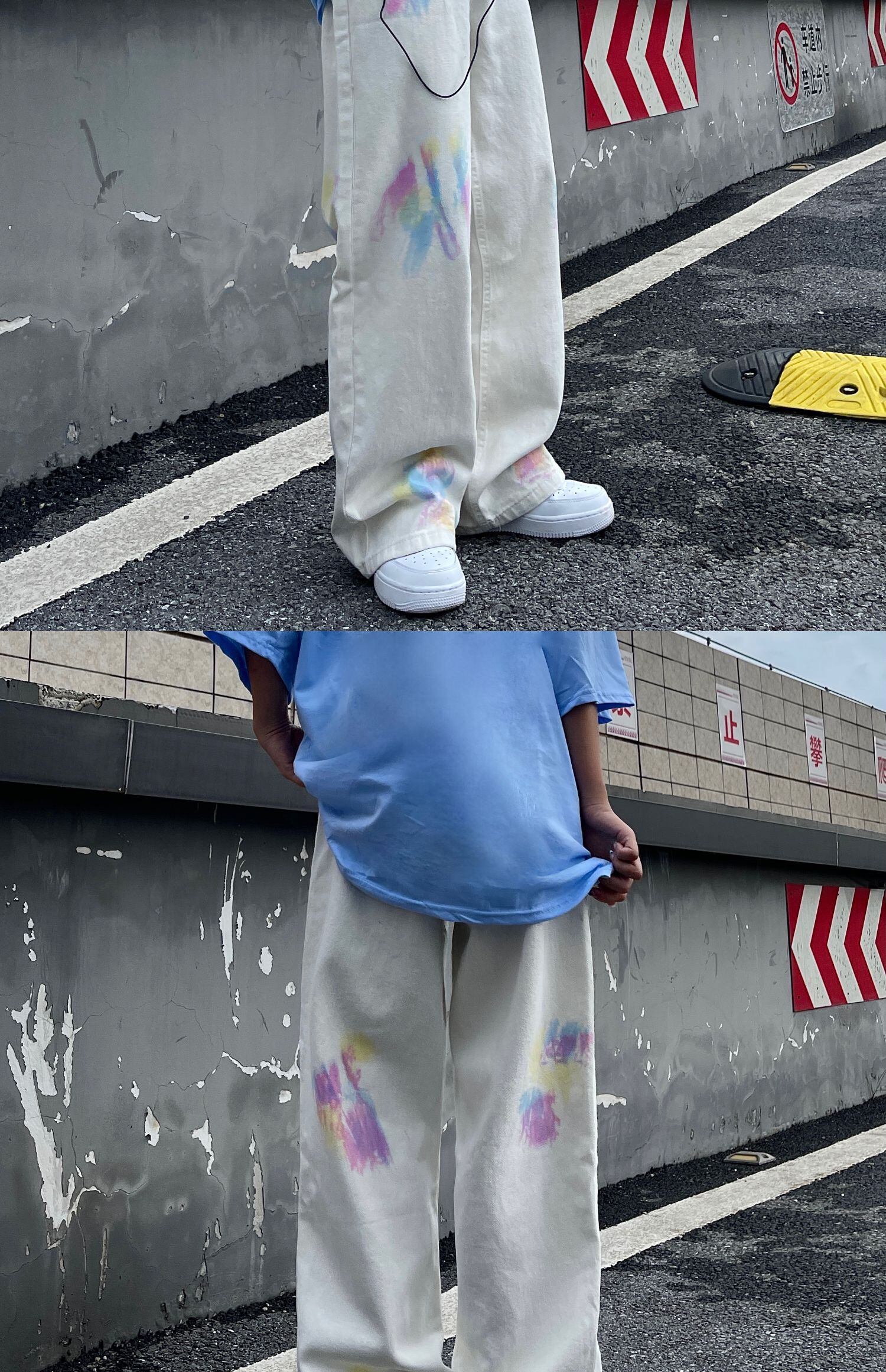 ルーズジーンズ 夏服スタイル韓国ファッションハイウェストパンツ 薄手 夏物 ウエスト コーデ モノクロ Studio87653916593
