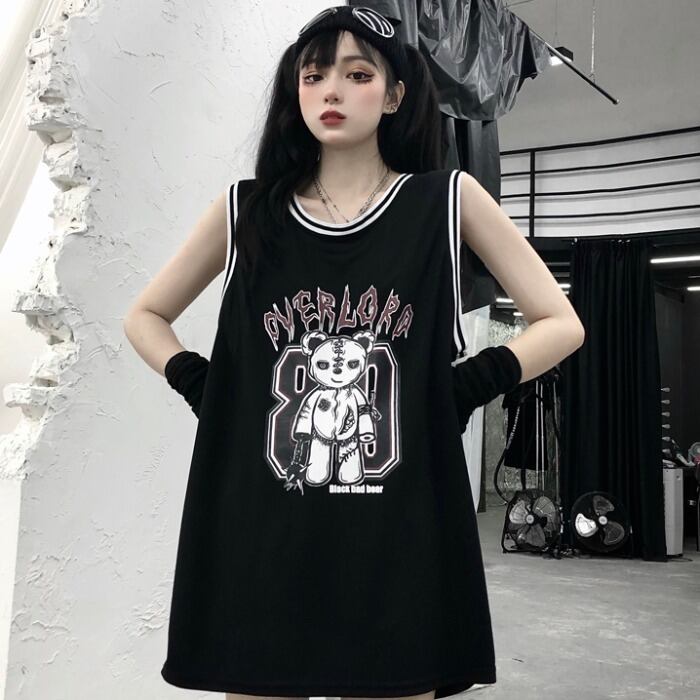 ノースリーブTシャツレディース夏服韓国ファッショントレンドプリント柄ルーズゆったりトップス 夏物 スタイル コーデ モノクロ Studio58654361228