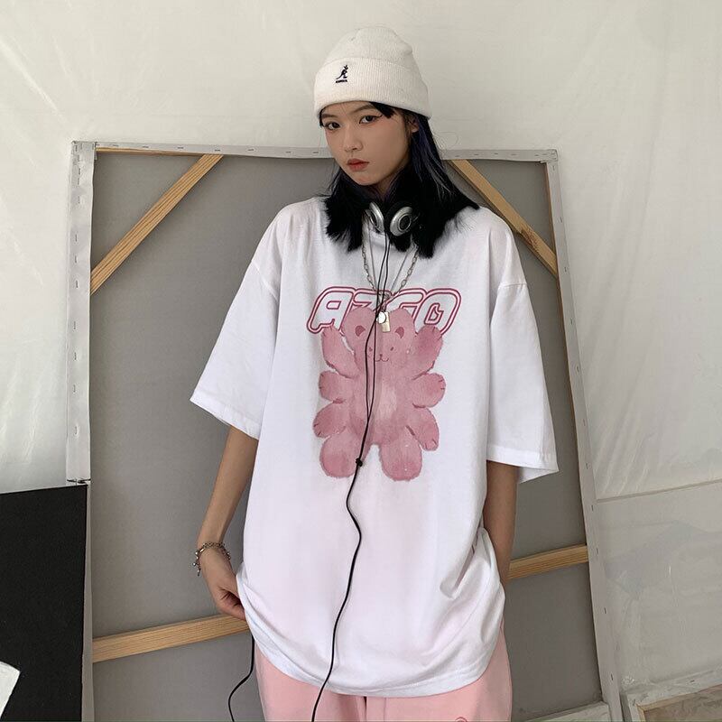 ゆったりシャツ レディース夏服韓国ファッショントレンドホワイトラウンドネックルーズTシャツ 夏物 Oネック ボーイズ スタイル コーデ モノクロ Studio70992024415