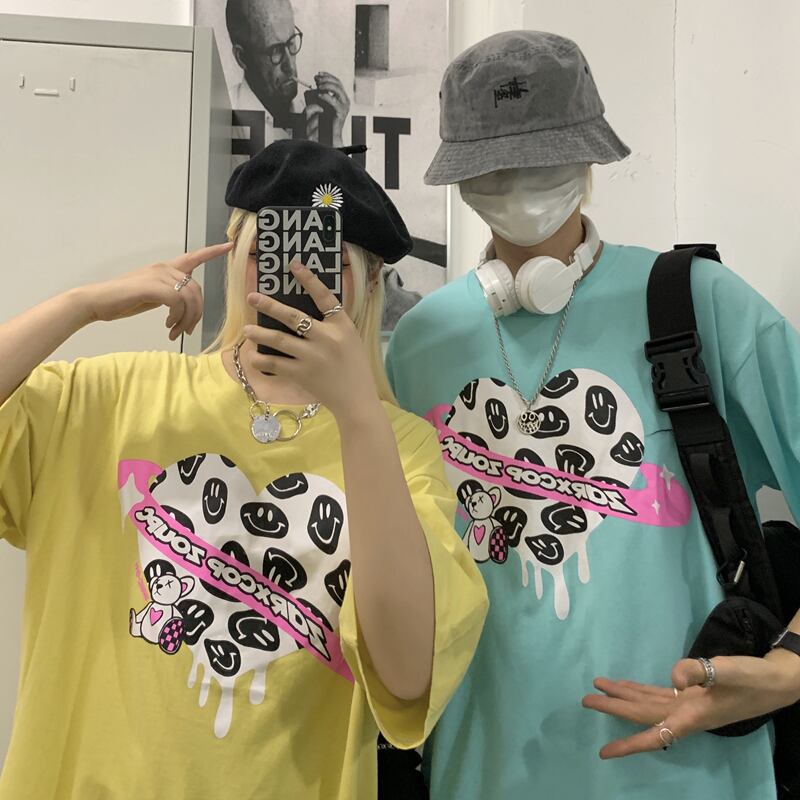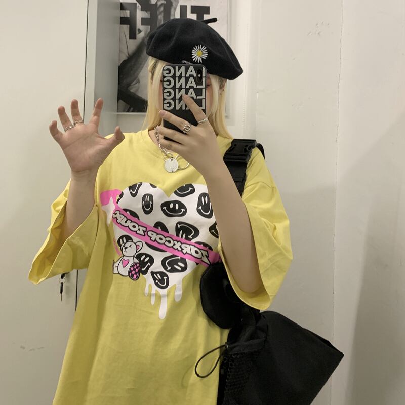夏服韓国ファッショントレンドスタイルハートプリントルーズラウンドネック半袖スリーブTシャツレディース ショート ハーフスリーブ 原宿 夏物 Oネック Studios90483175944 | pLegLad Studios