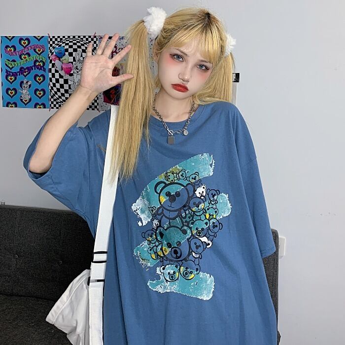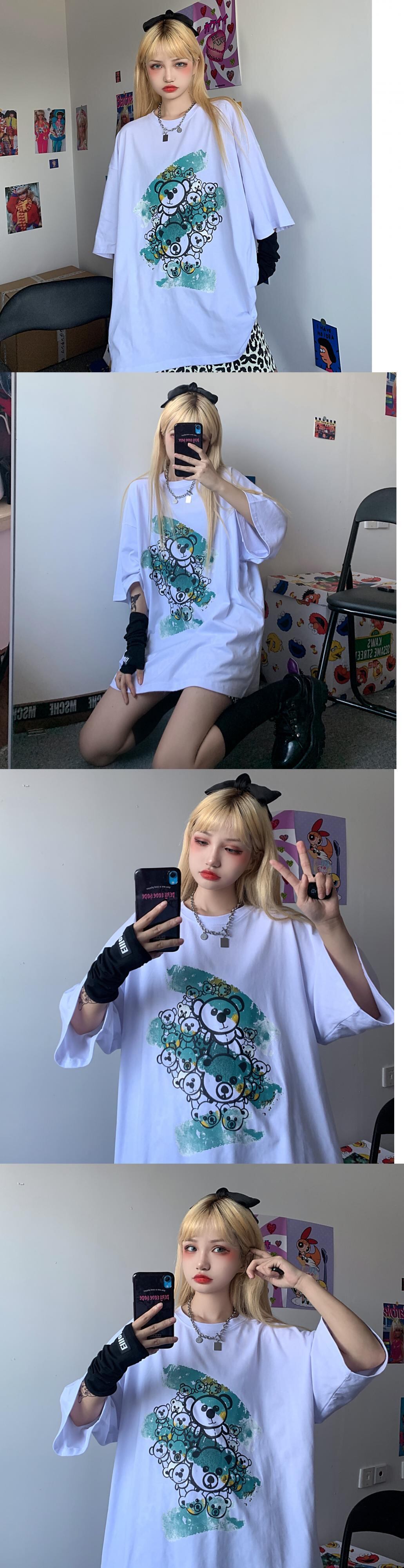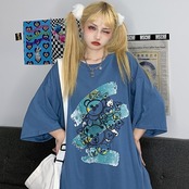 プリント柄ジャケット レディース夏服韓国ファッショントレンドルーズTシャツ 夏物 スタイル コーデ モノクロ Studio29565205774