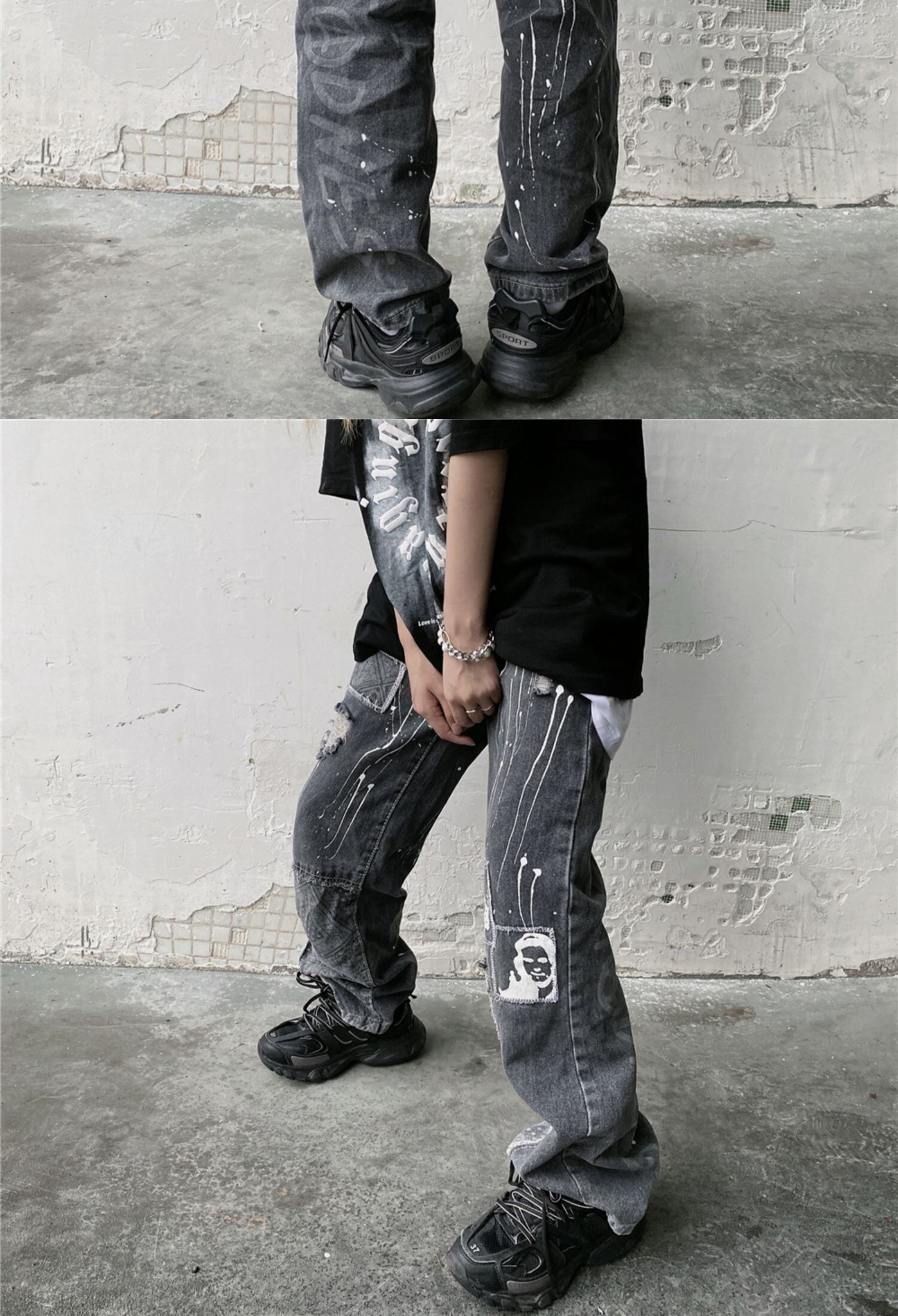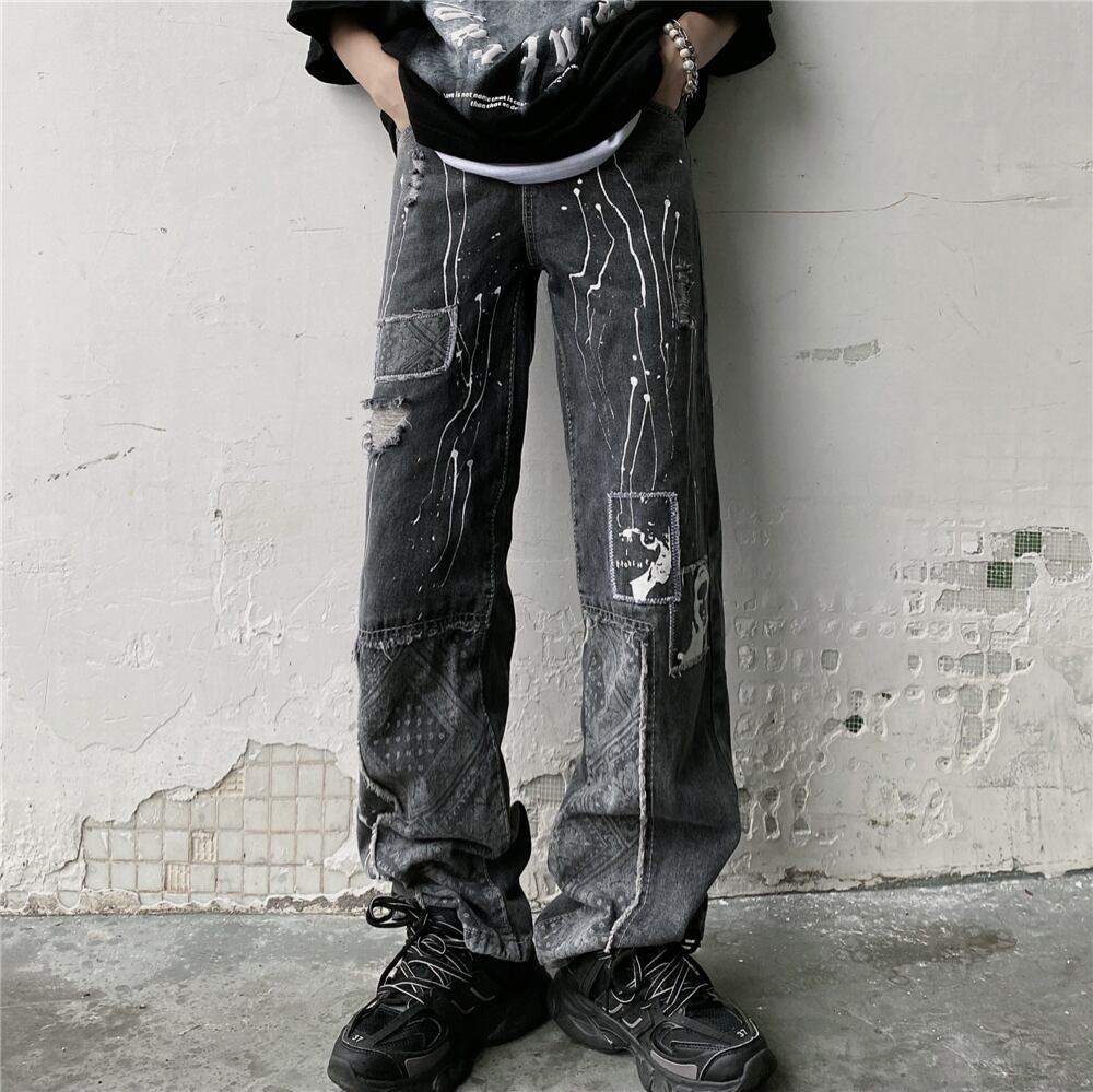 韓国ファッションパンツ レディース夏服スタイルルーズジーンズ ハイウェストウェスト 夏物 ウエスト コーデ モノクロ Studio29023632731
