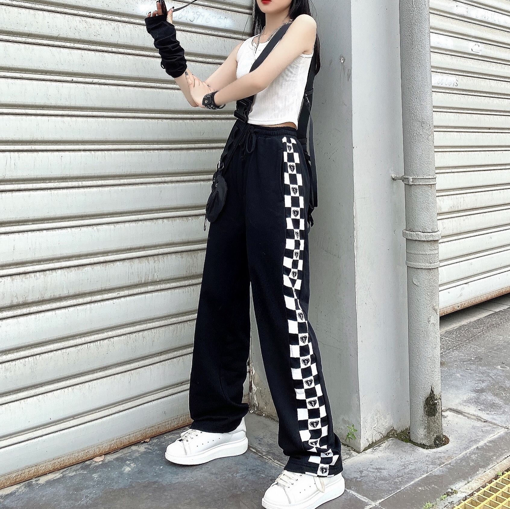 夏服スタイル韓国ファッションハイウェストルーズカジュアルパンツ レディース 原宿 夏物 ウエスト コーデ モノクロ Studio87918263150