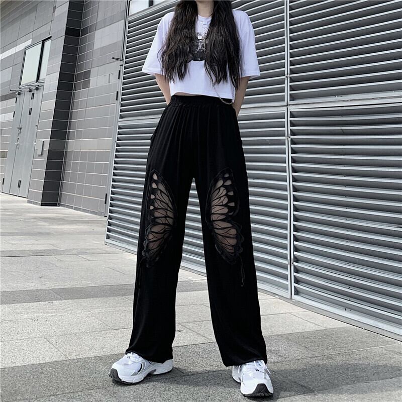 カジュアルパンツ レディース夏服韓国ファッショントレンドメッシュButterflyデザイン ルーズハイウェストウェスト薄手ワイドレッグ ストリート 夏物 ワイドパンツ スタイル ウエスト Studios57019078618 | pLegLad Studios