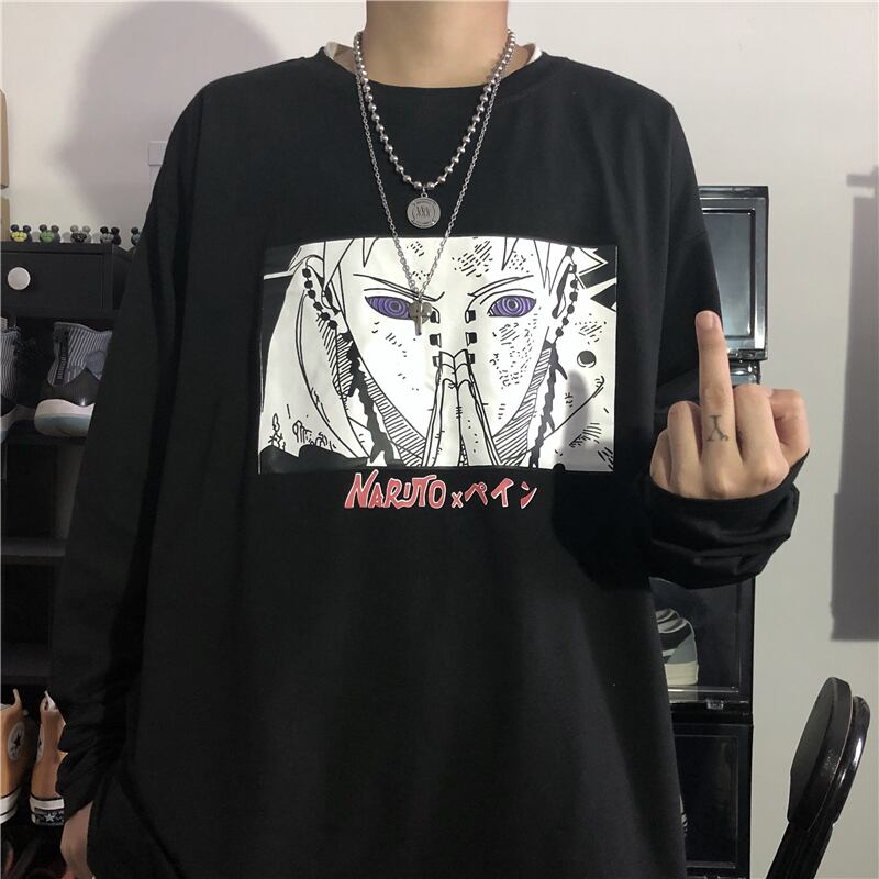 秋物韓国ファッショントレンドスタンダードプリントルーズゆったりTシャツメンズレディース ロング レトロ ストリート オータム スタイル 長袖 Studios57861881473 | pLegLad Studios