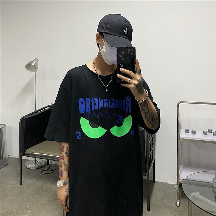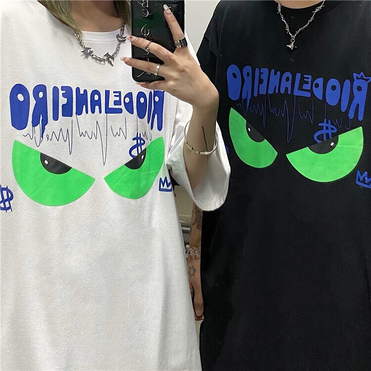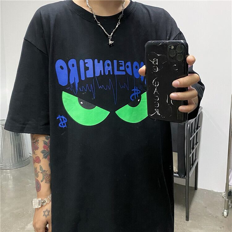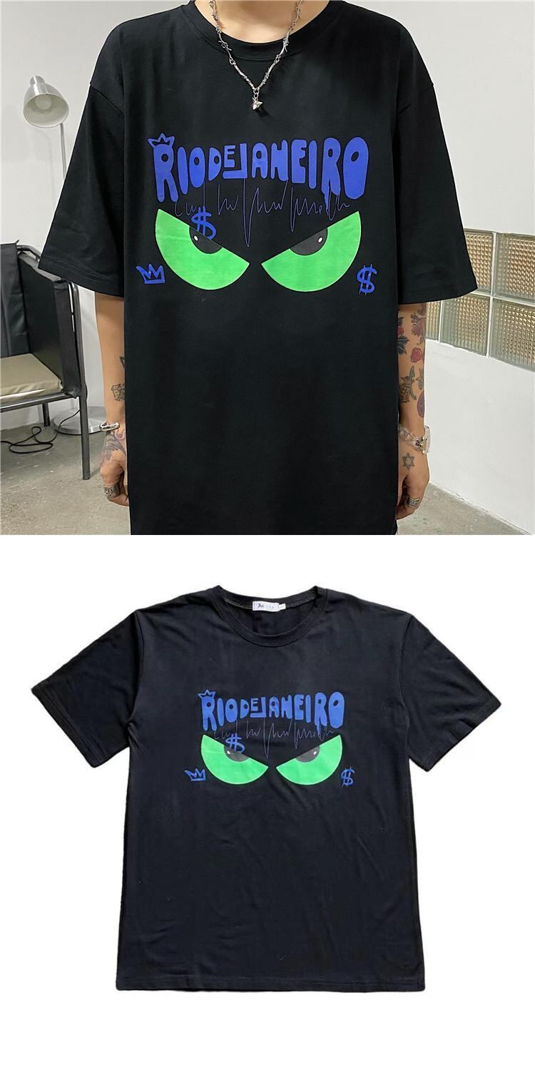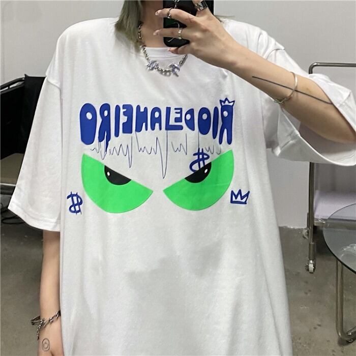 ラウンドネックカジュアルTシャツレディース夏服韓国ファッショントレンドスタイルプリントルーズトップス 原宿 夏物 Oネック コーデ モノクロ Studio62100497134