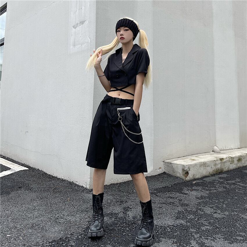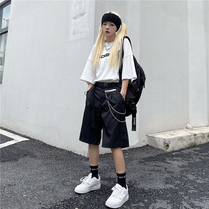 夏服パンツ レディース韓国ファッションスタイルブラックルーズショーツ 夏物 ボーイズ コーデ モノクロ Studio99146792925