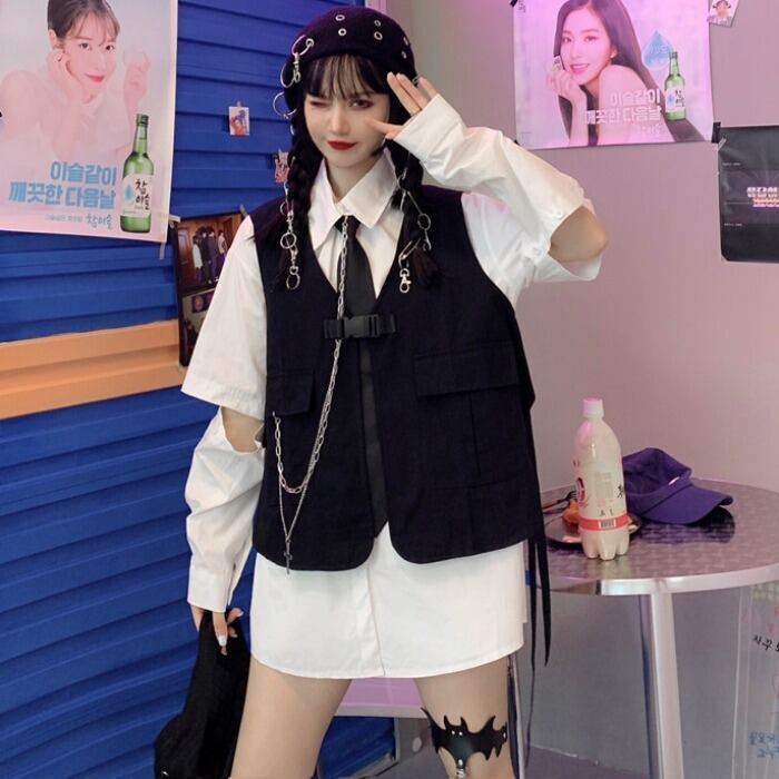 色:グレーのベスト,黒のベスト,白シャツ+タイチェーン,黒シャツ+タイチェーン