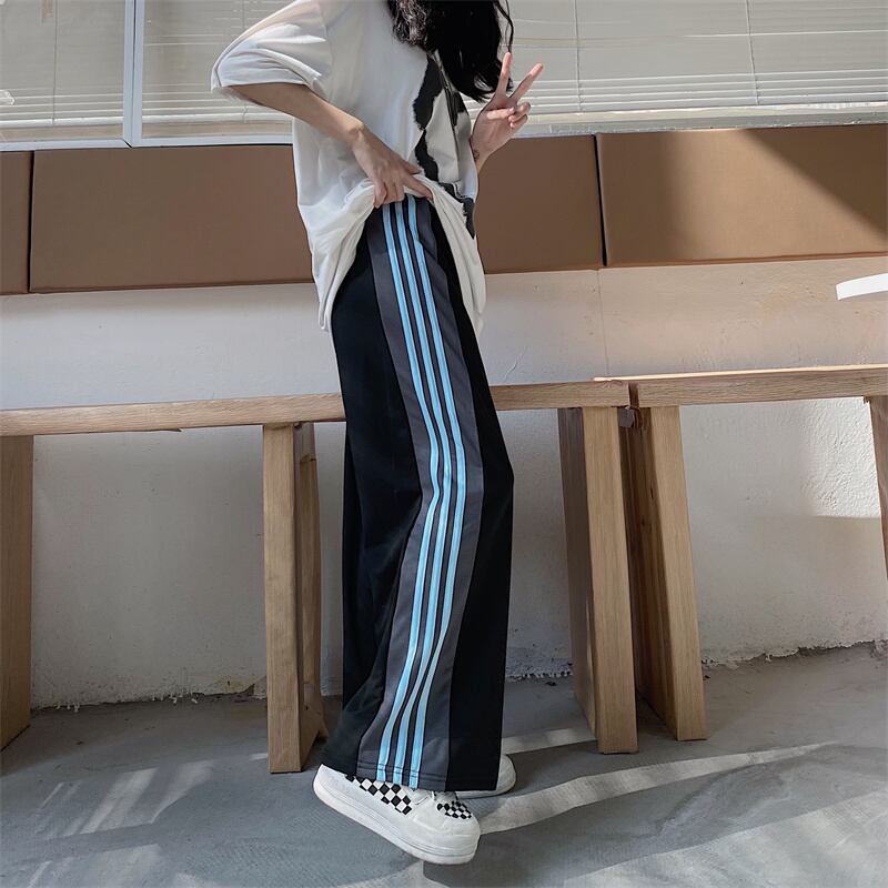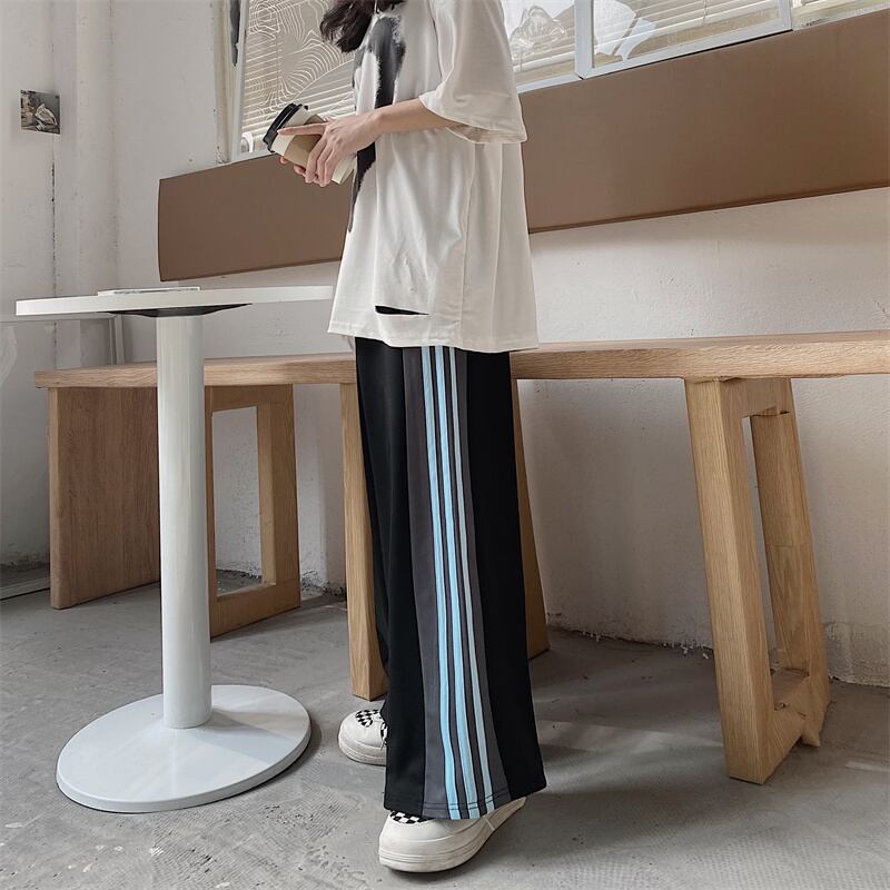 パンツ レディース夏服韓国ファッションブルーハイウェスト薄手 夏物 スタイル ウエスト コーデ モノクロ Studio98591400001