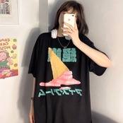 夏服トップス レディース韓国ファッショントレンドプリントルーズカジュアルTシャツ 夏物 スタイル コーデ モノクロ Studio71096560026