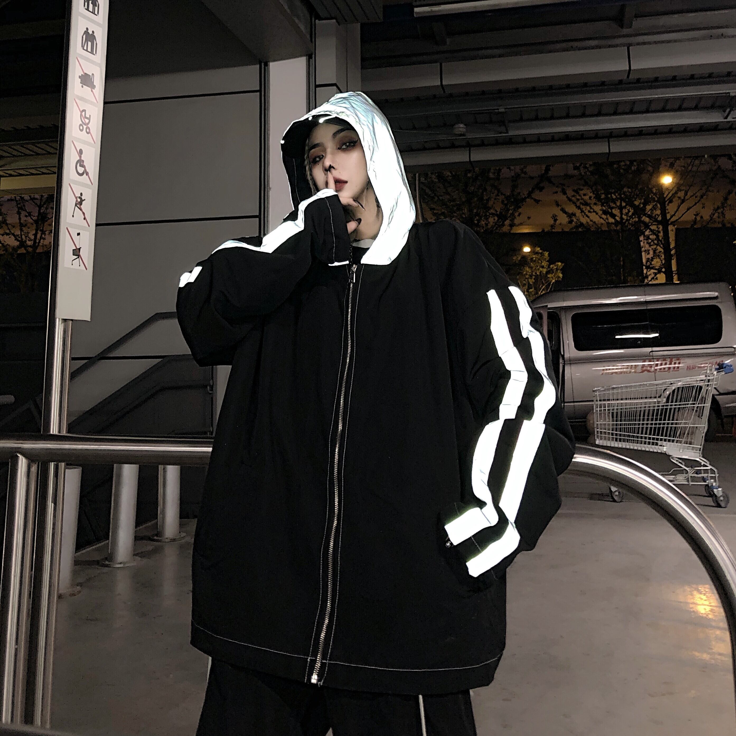ジャケット レディース秋物ウィンター韓国ファッショントレンドストライプルーズフードトップス ストリート オータム 冬物 スタイル Studios53007364110 | pLegLad Studios