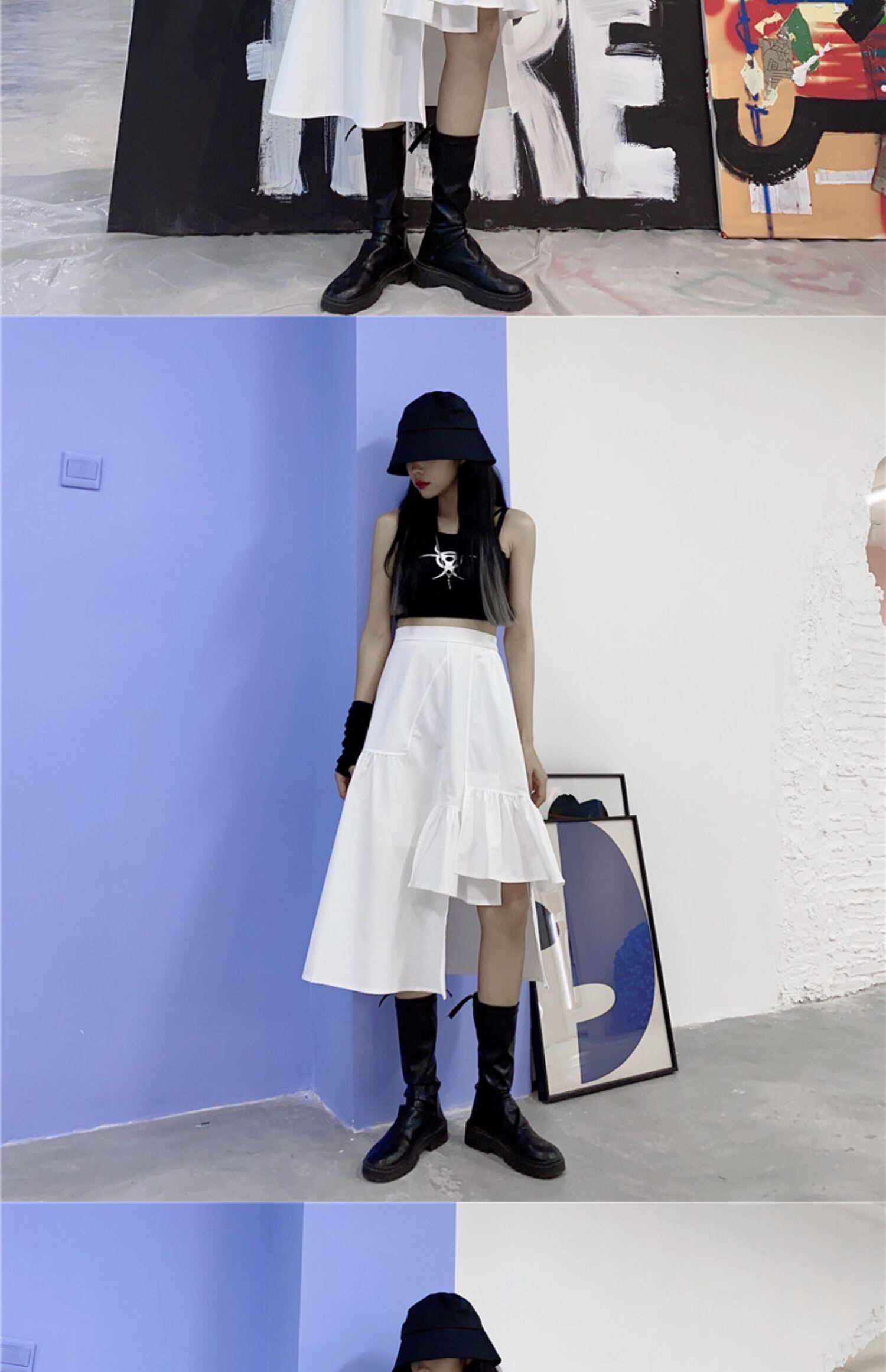 ホワイトスカート レディース夏服Aラインハイウェストウェストカジュアルワンピース 夏物 ウエスト ミドル丈 コーデ モノクロ Studio79128124505