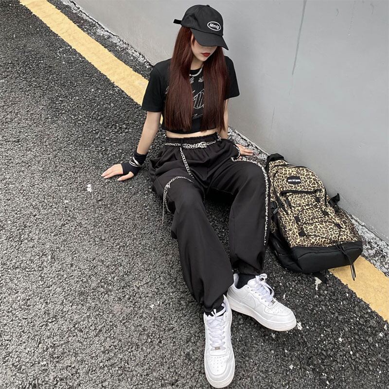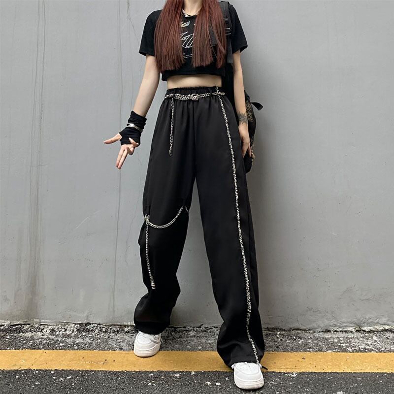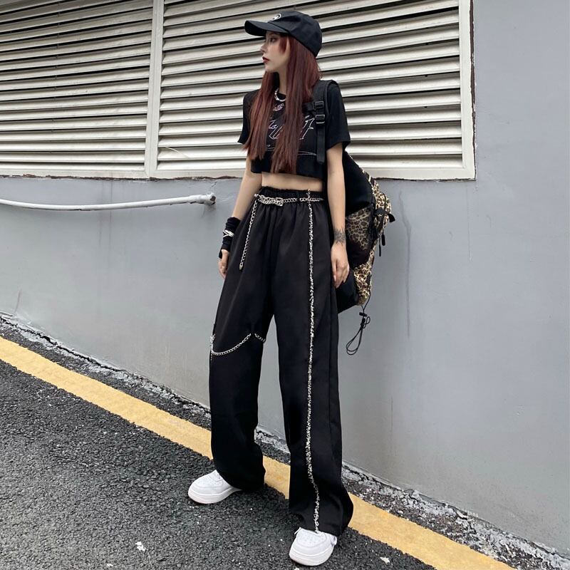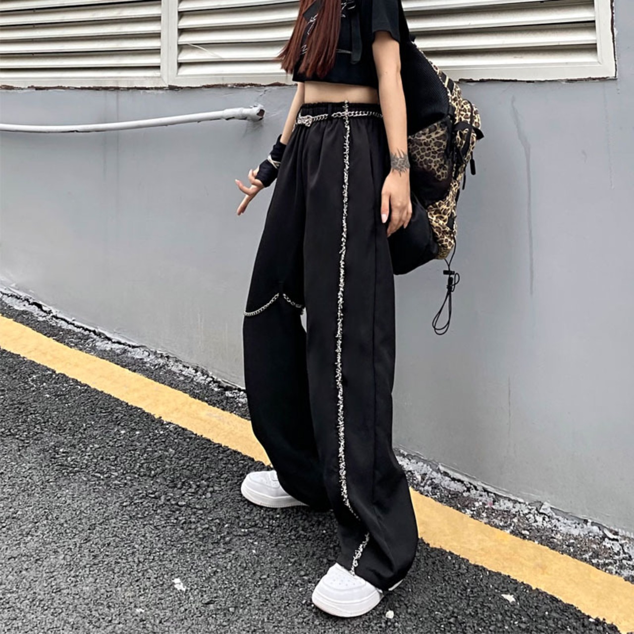 カジュアルパンツ レディース夏服韓国ファッションダークブラックハイウェストレギンス ルーズ 夏物 ボーイズ スタイル ウエスト コーデ モノクロ Studio23020856851 | pLegLad Studios