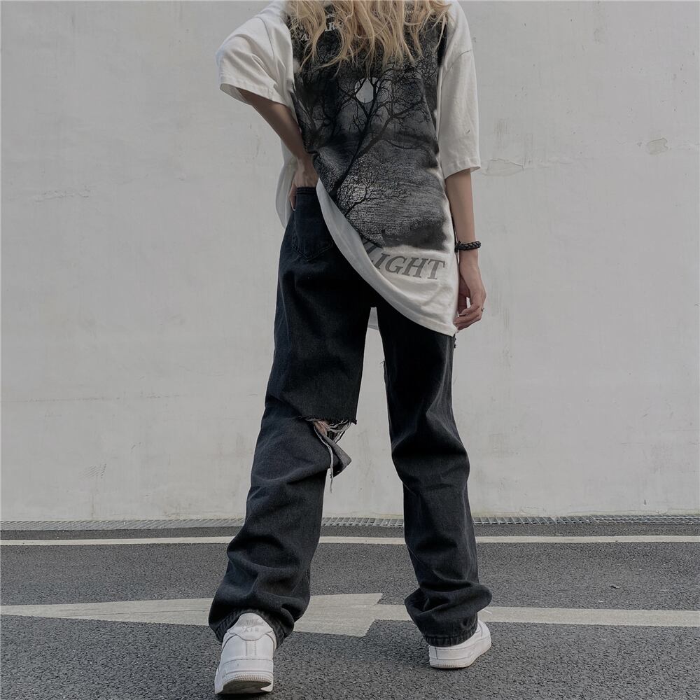 ハイウェストウェストスリムジーンズ レディース夏服スタイル韓国ファッション薄手ルーズワイドレッグパンツ 夏物 ワイドパンツ ウエスト コーデ モノクロ Studio55490760329 | pLegLad Studios