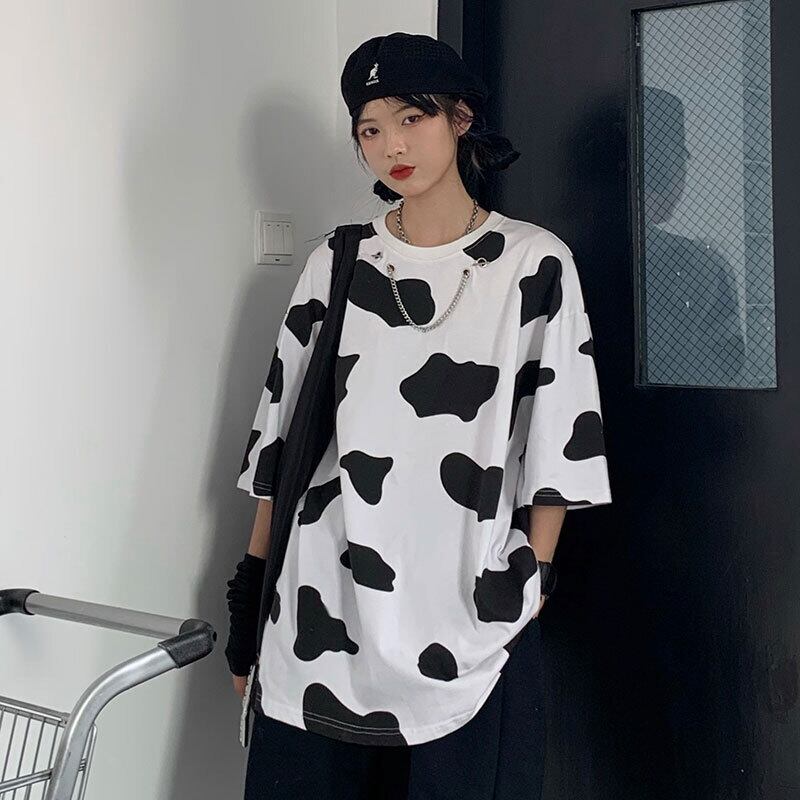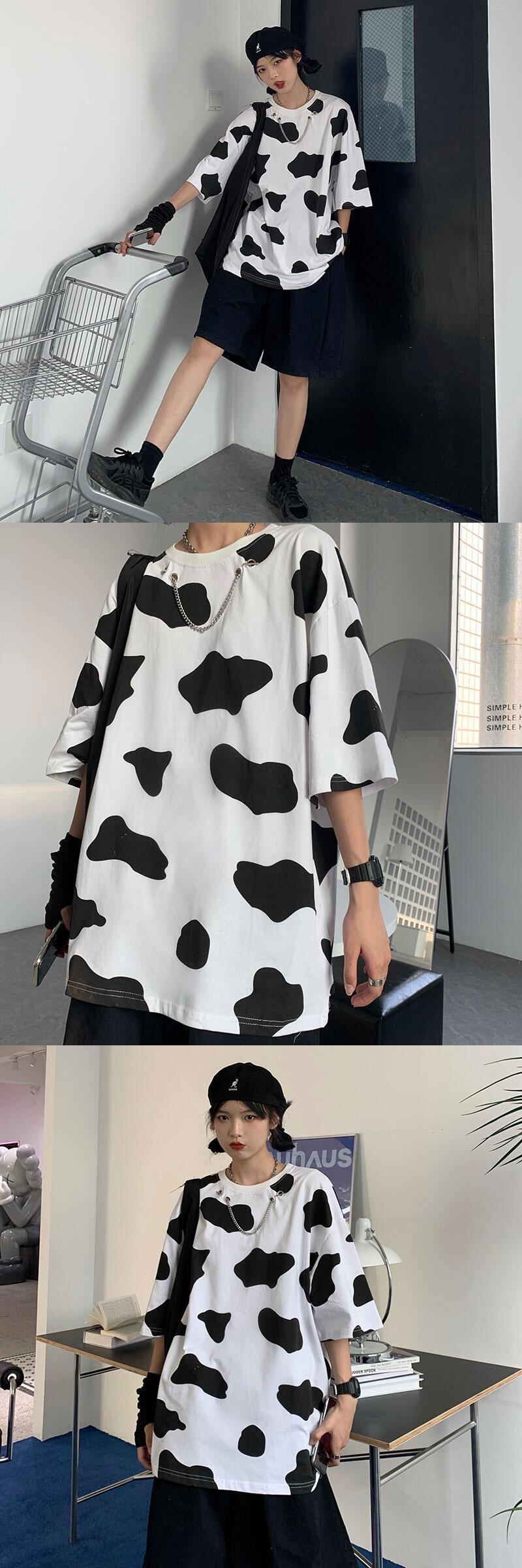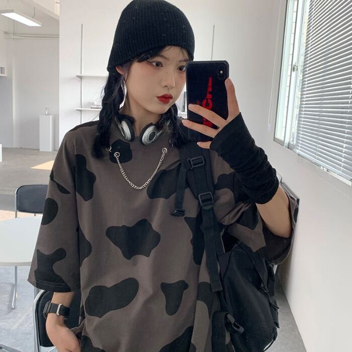 夏服カジュアルゆったりシャツ レディース韓国ファッショントレンドパターンルーズTシャツトップス 夏物 スタイル コーデ モノクロ Studio97548531616