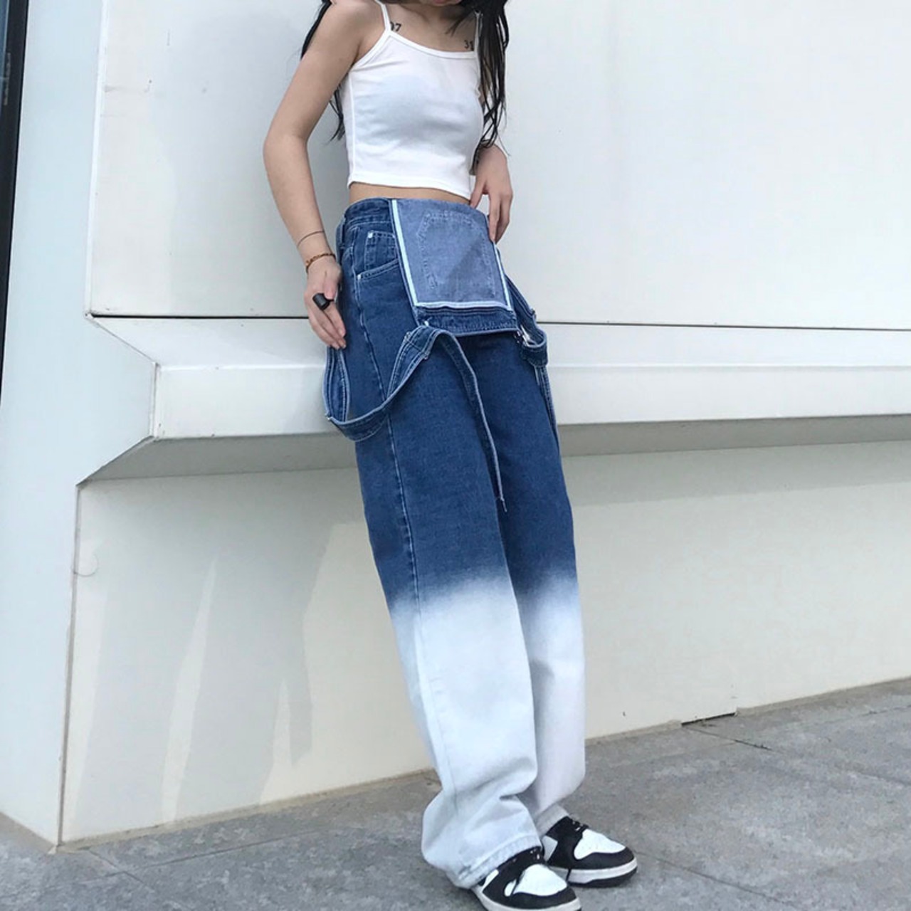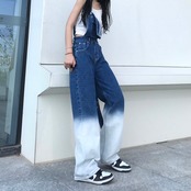 ブルーホワイトジーンズ レディース夏服スタイル韓国ファッションハイウェストウェストワイドレッグパンツ 夏物 ワイドパンツ ボーイズ ウエスト コーデ モノクロ Studio23640304454