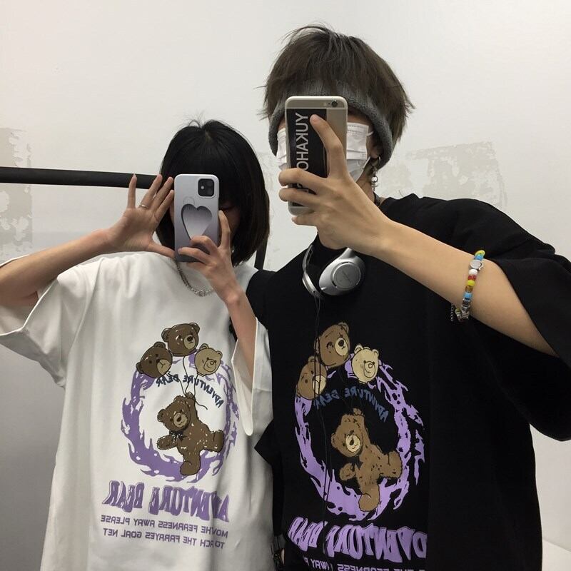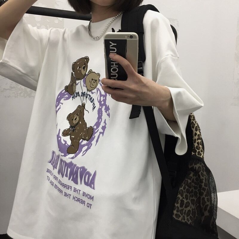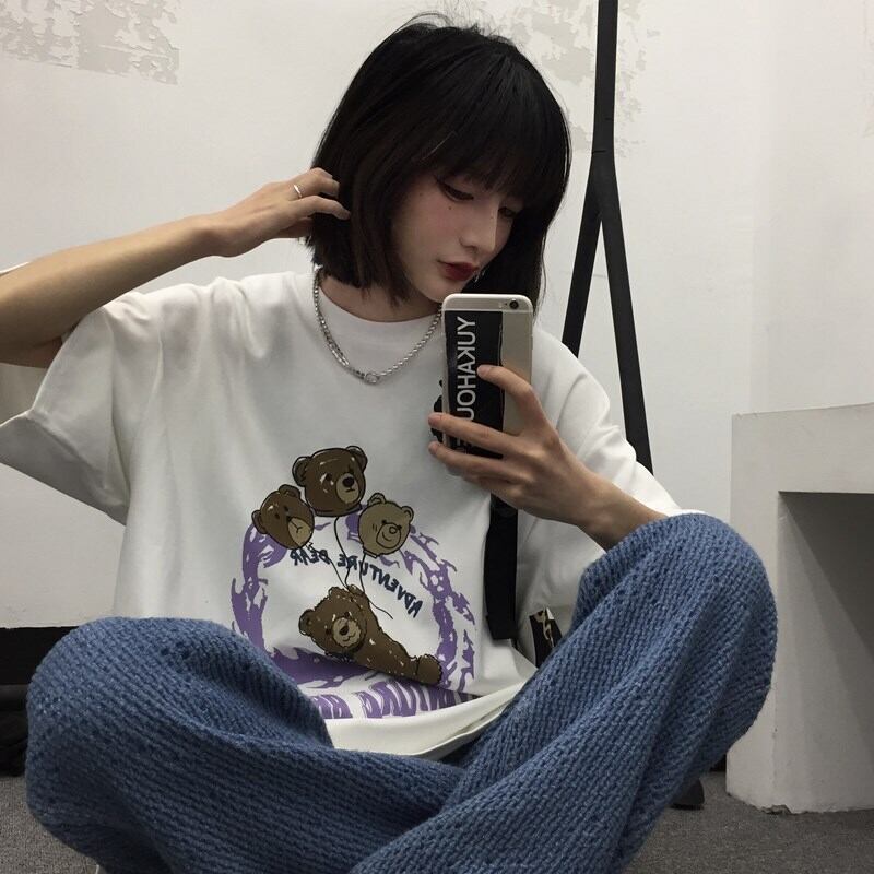 カジュアルTシャツレディース夏服韓国ファッショントレンドスタンダードプリント柄ルーズトップス レトロ 夏物 スタイル コーデ モノクロ Studio64943704645