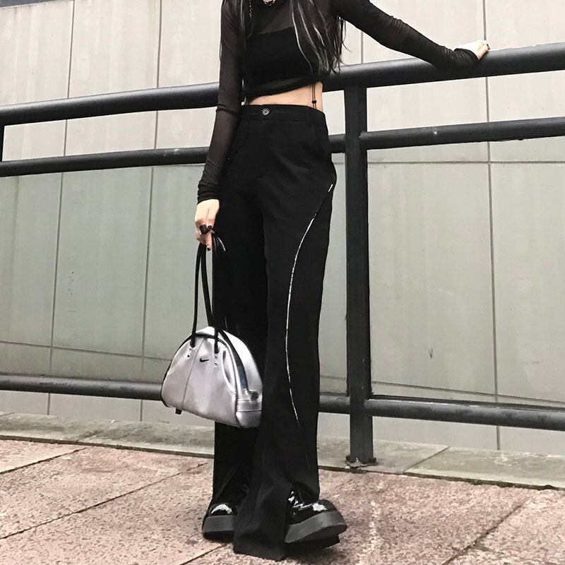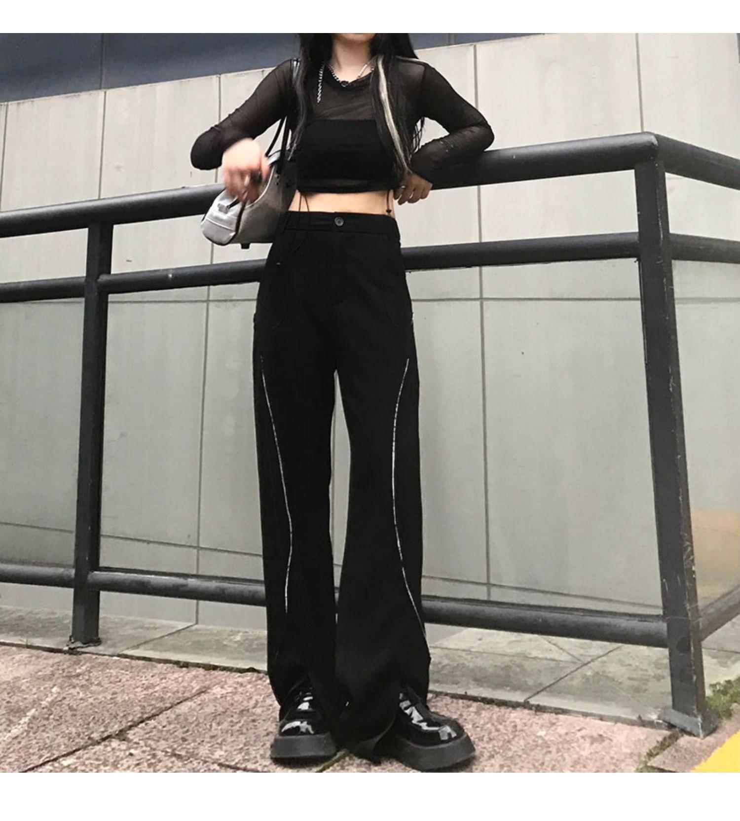 カジュアルレディース夏服トレンドハイウェストウェストパンツ 薄手 夏物 ウエスト コーデ モノクロ Studio11934714035