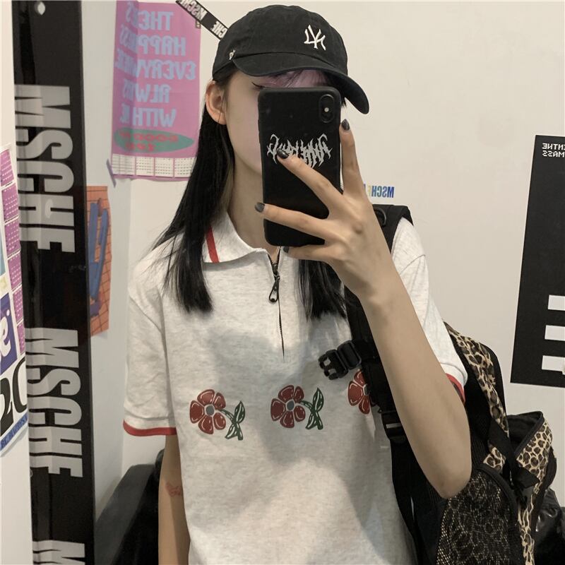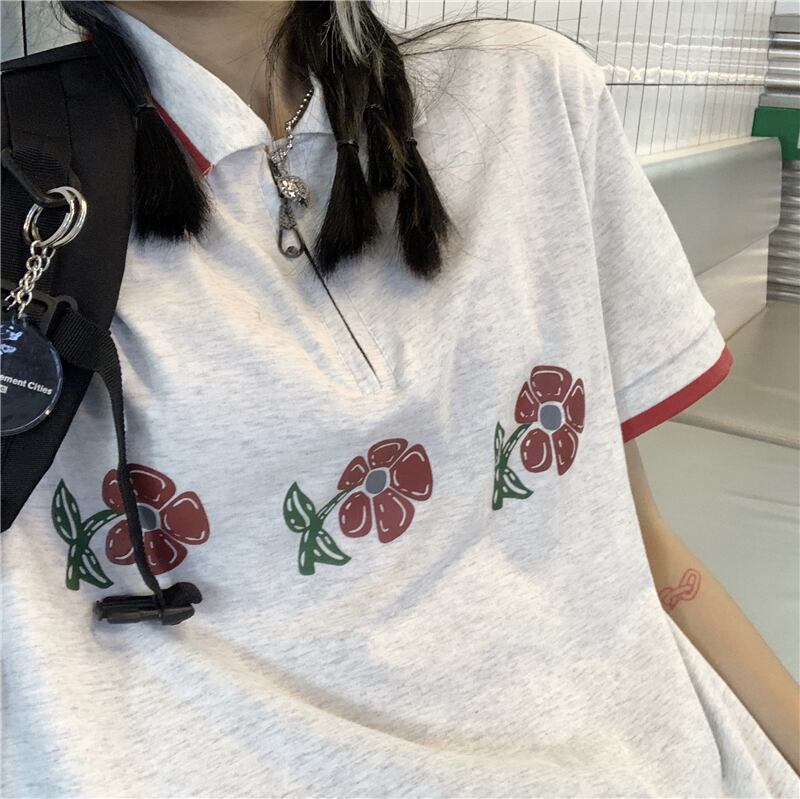 夏服韓国ファッショントレンドスタイルスタンダードFlowerデザイン プリント柄カラールーズカジュアルTシャツレディース レトロ 原宿 夏物 フラワーデザイン Studios73351557934 | pLegLad Studios